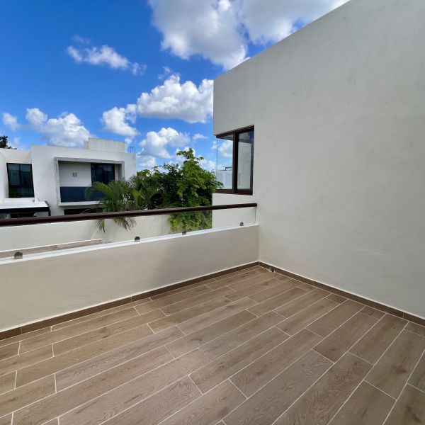 Balcón amplio con vista hacia la parte trasera.