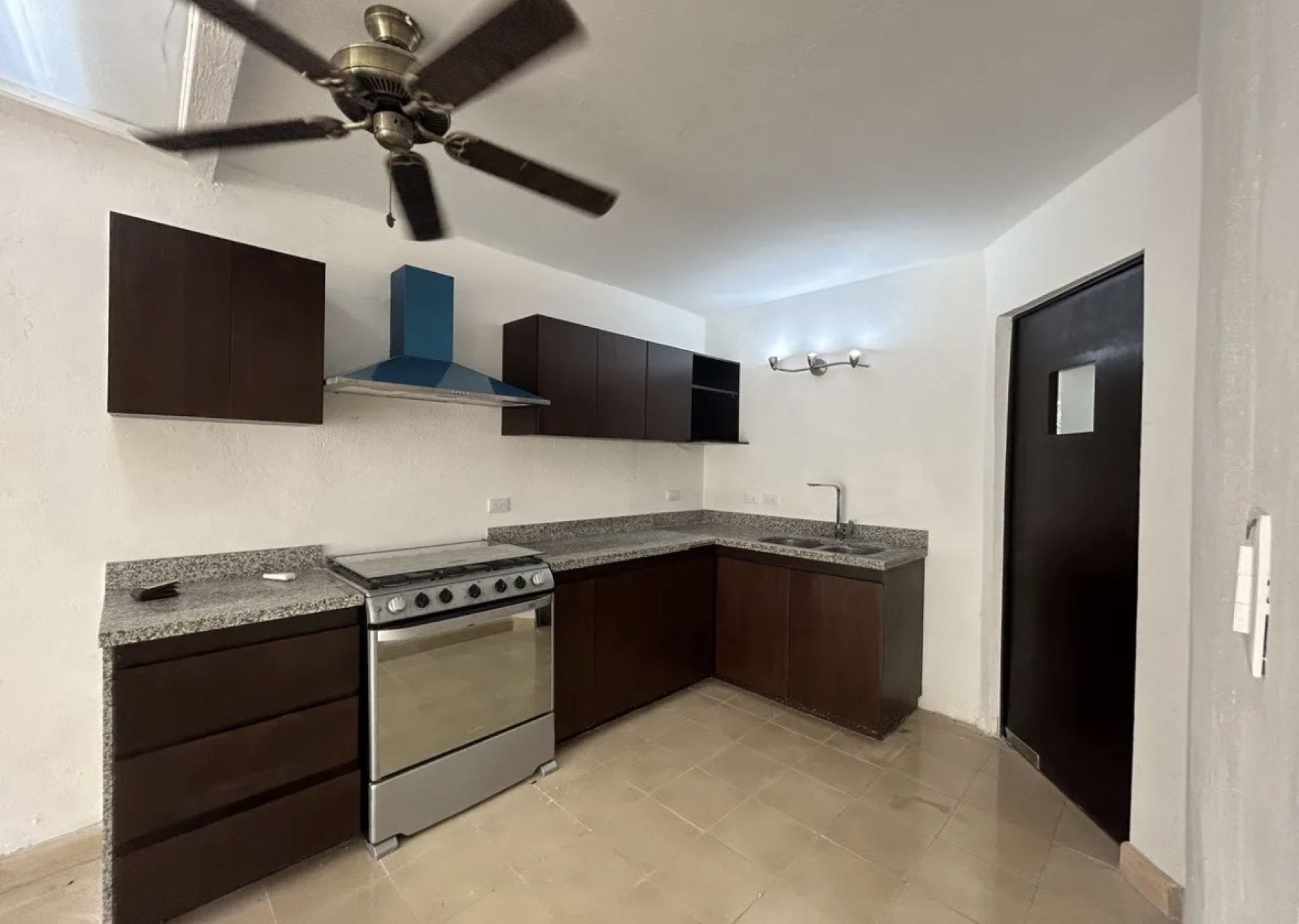 Cocina equipada con estufa y campana