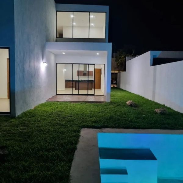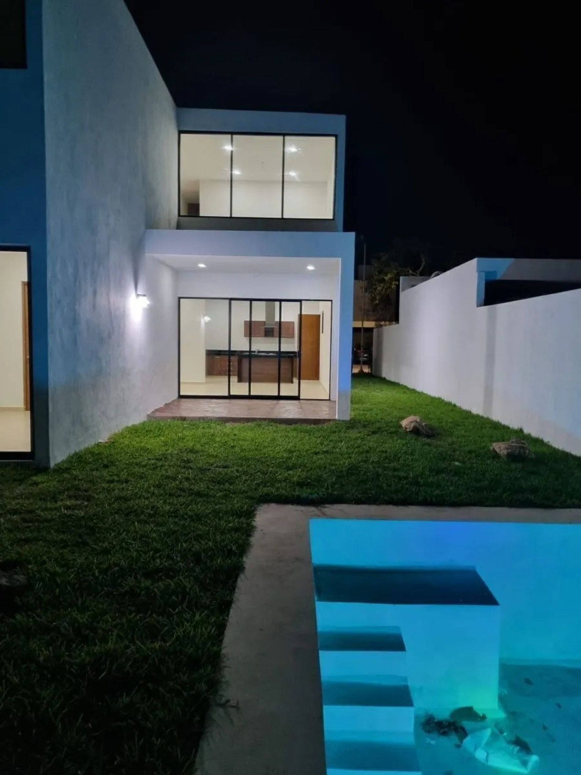 Amplia casa con 4 recámaras, jardín y alberca privada, ubicada en una exclusiva privada residencial de solo 136 lotes. A menos de 10 minutos de plazas, escuelas y hospitales, y con fácil acceso a Progreso para disfrutar de la playa.