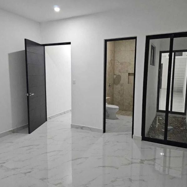 Recámara principal con clóset vestidor, baño completo y terraza frontal