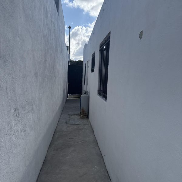 Patio trasero techado con área de lavado