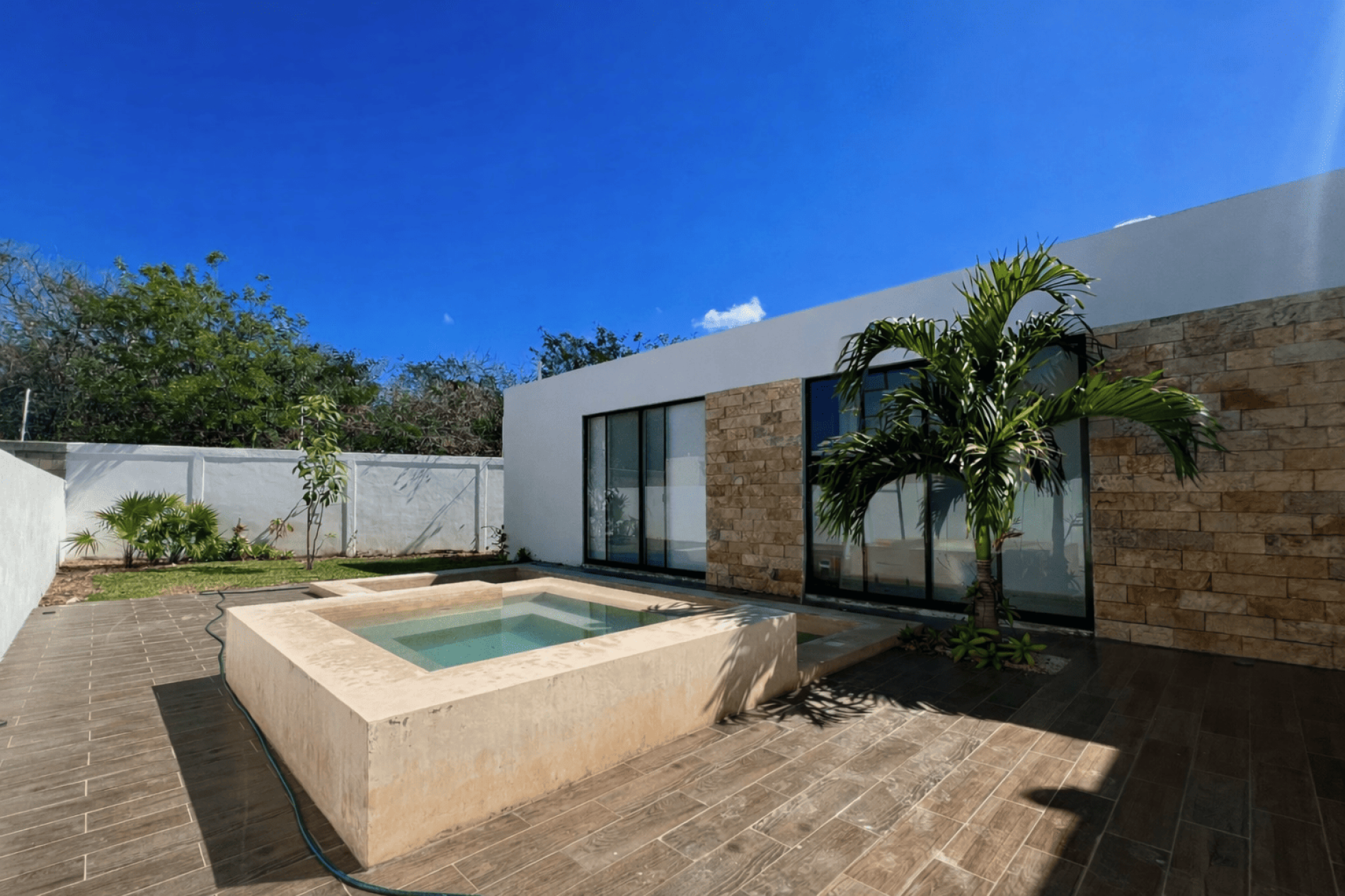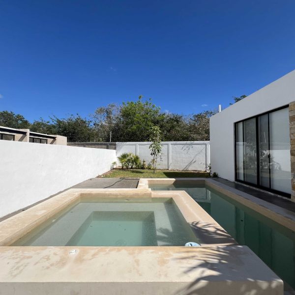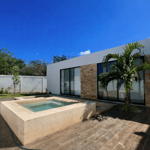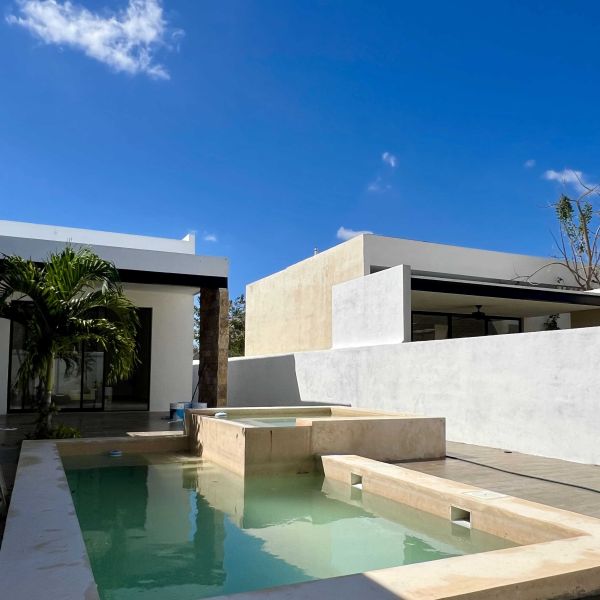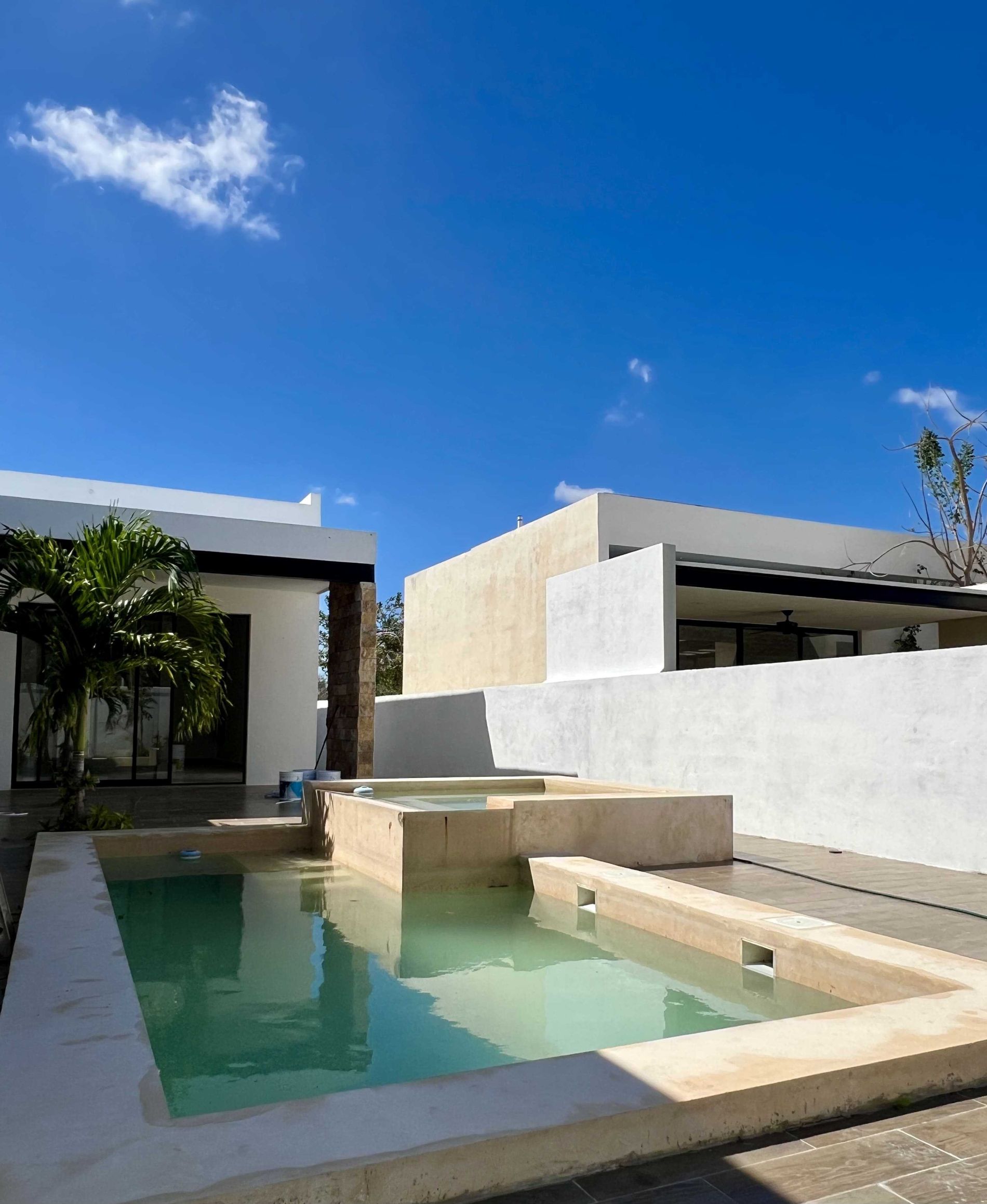 Alberca y jacuzzi con acabados de chukum y sistema de filtrado