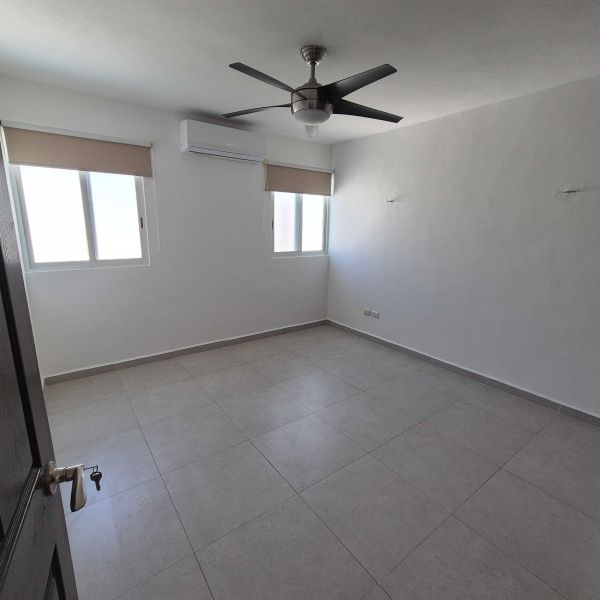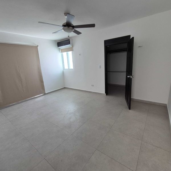 Recámara principal con clóset vestidor y baño