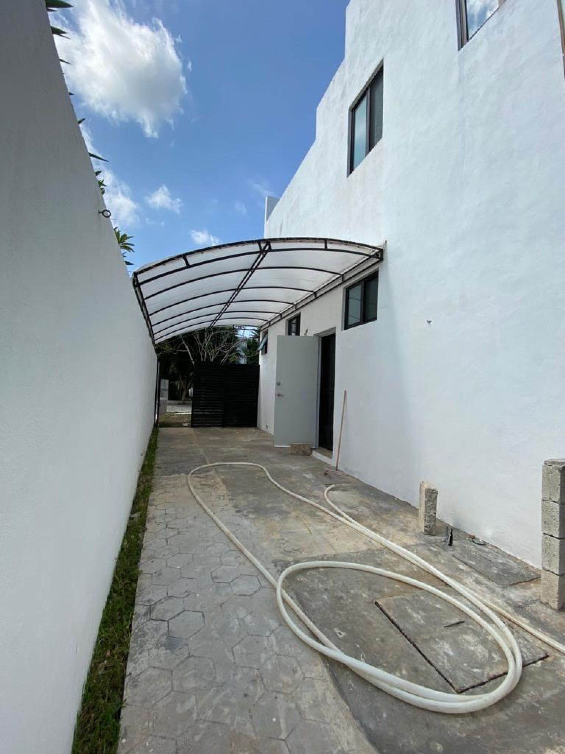 Pasillo de servicio amplio y techado