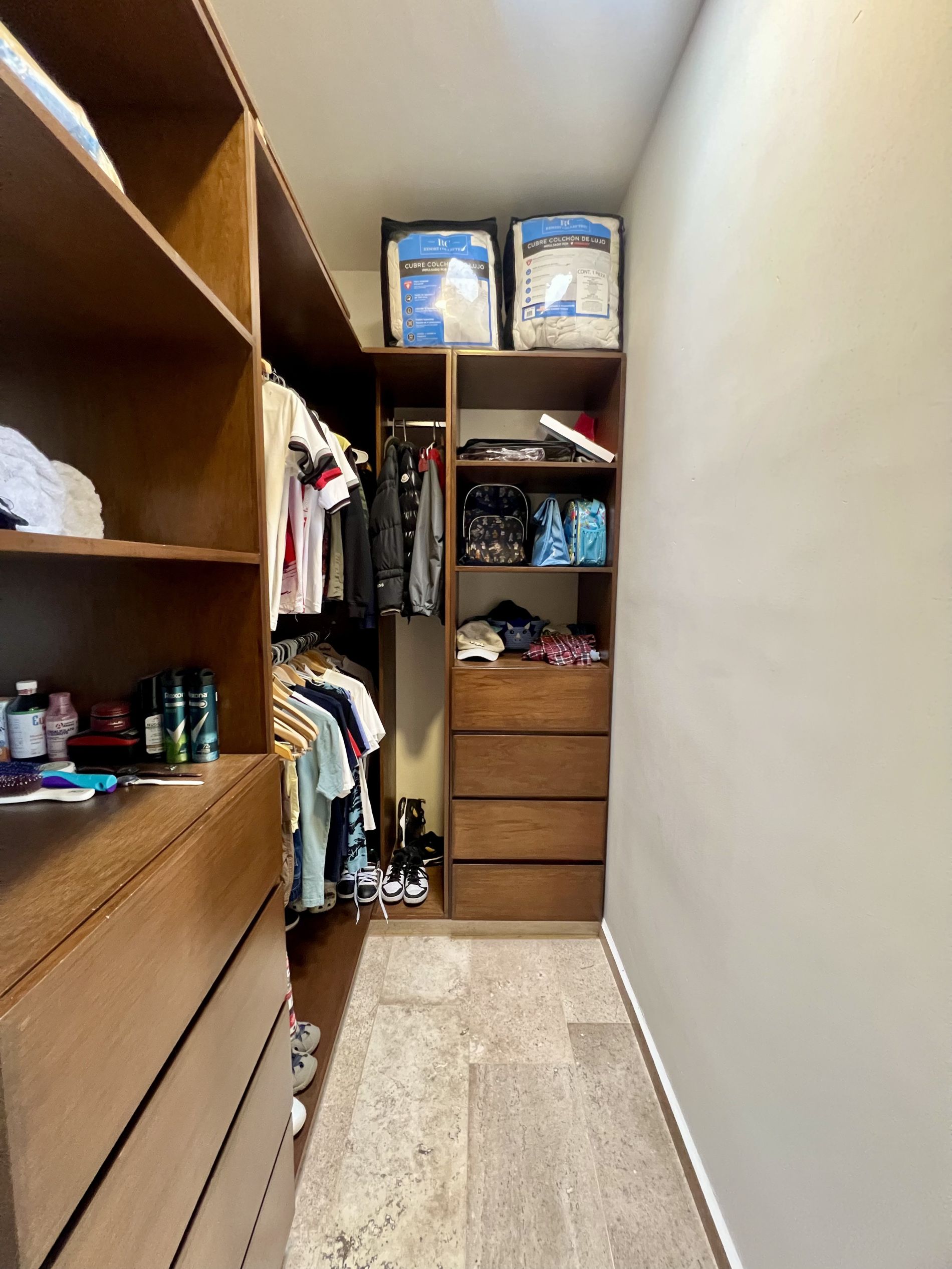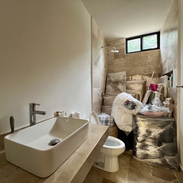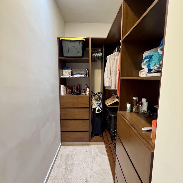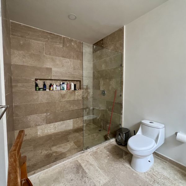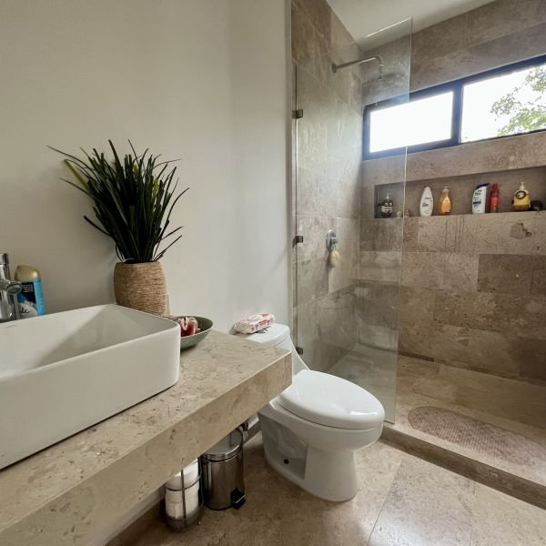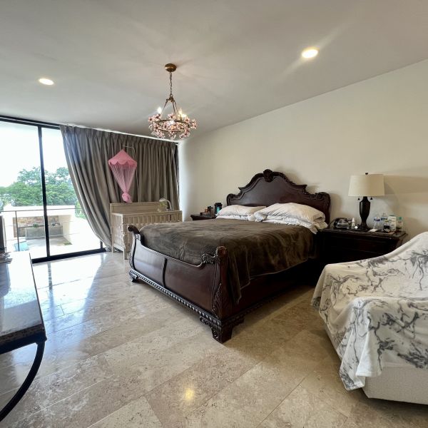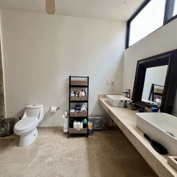Recámara principal con amplio clóset vestidor, baño completo con doble lavabo y doble regadera.