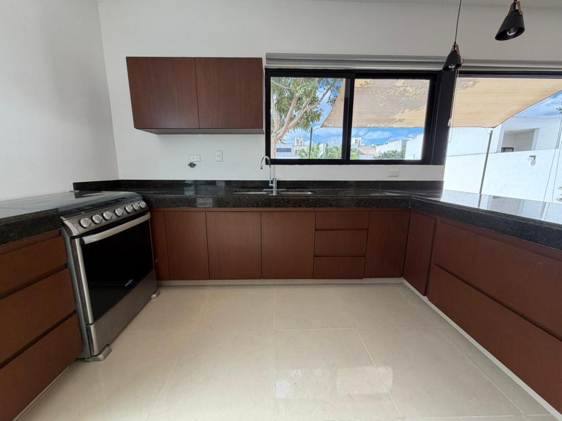 Cocina abierta equipada que incluye estufa