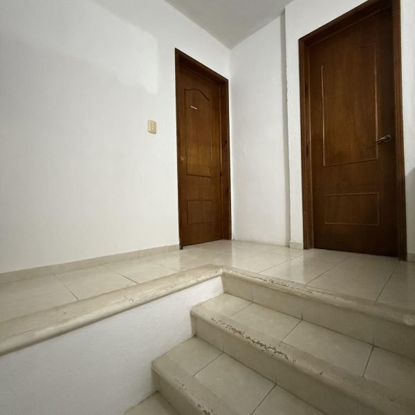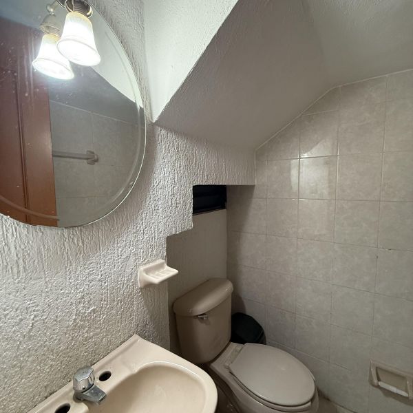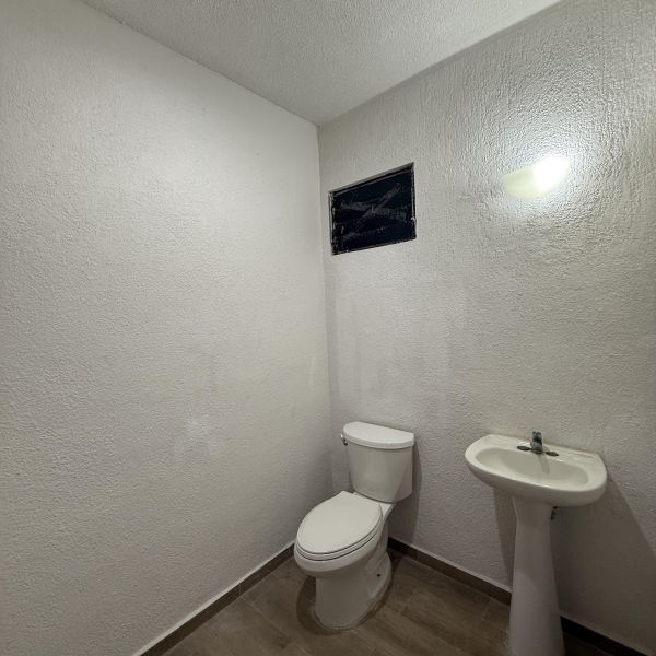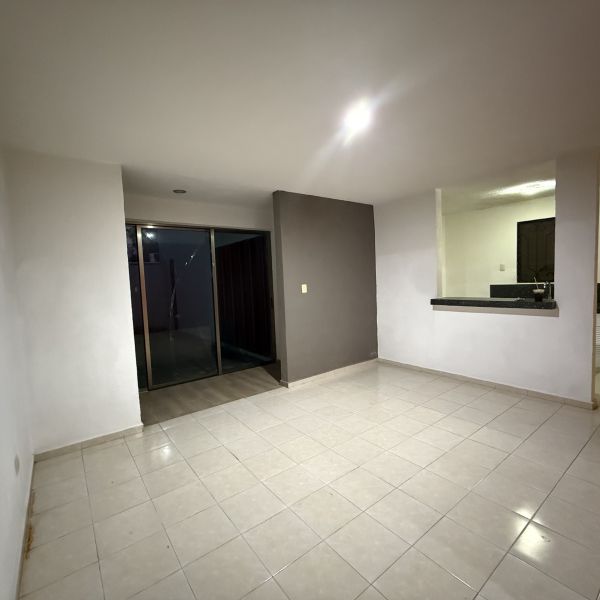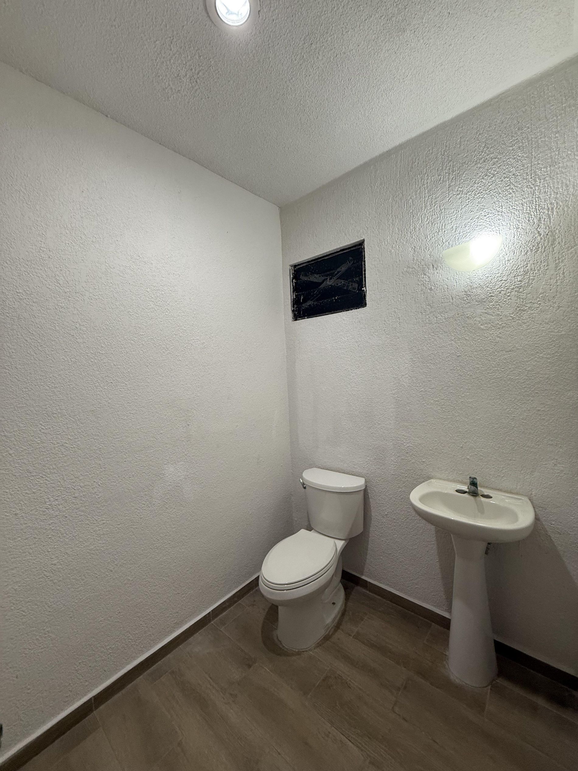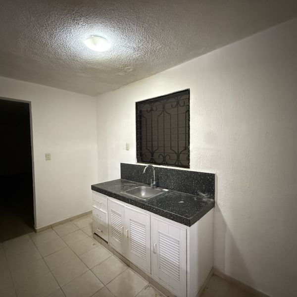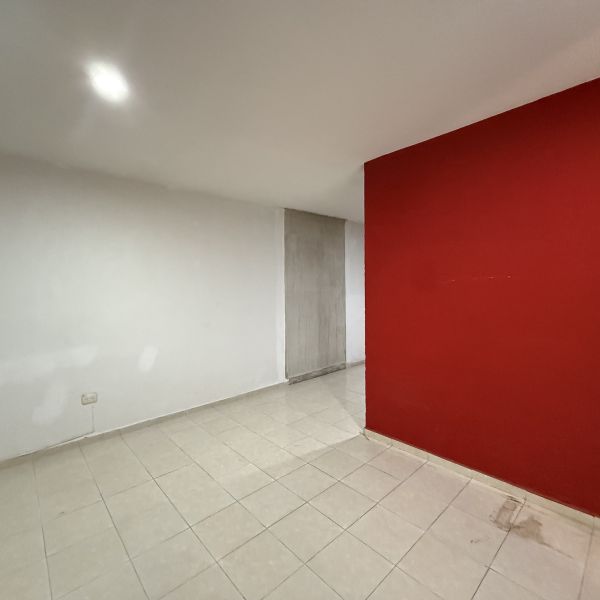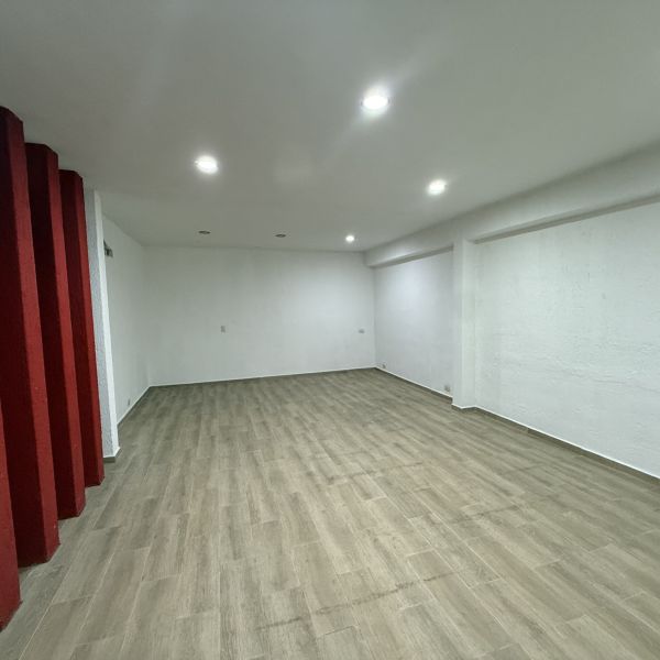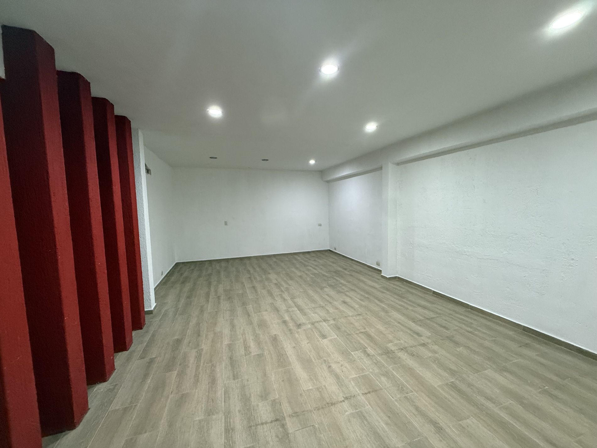 Área de recepción con amplio espacio, dividida de área de trabajo con acceso directo a medio baño y el área de cocina.
