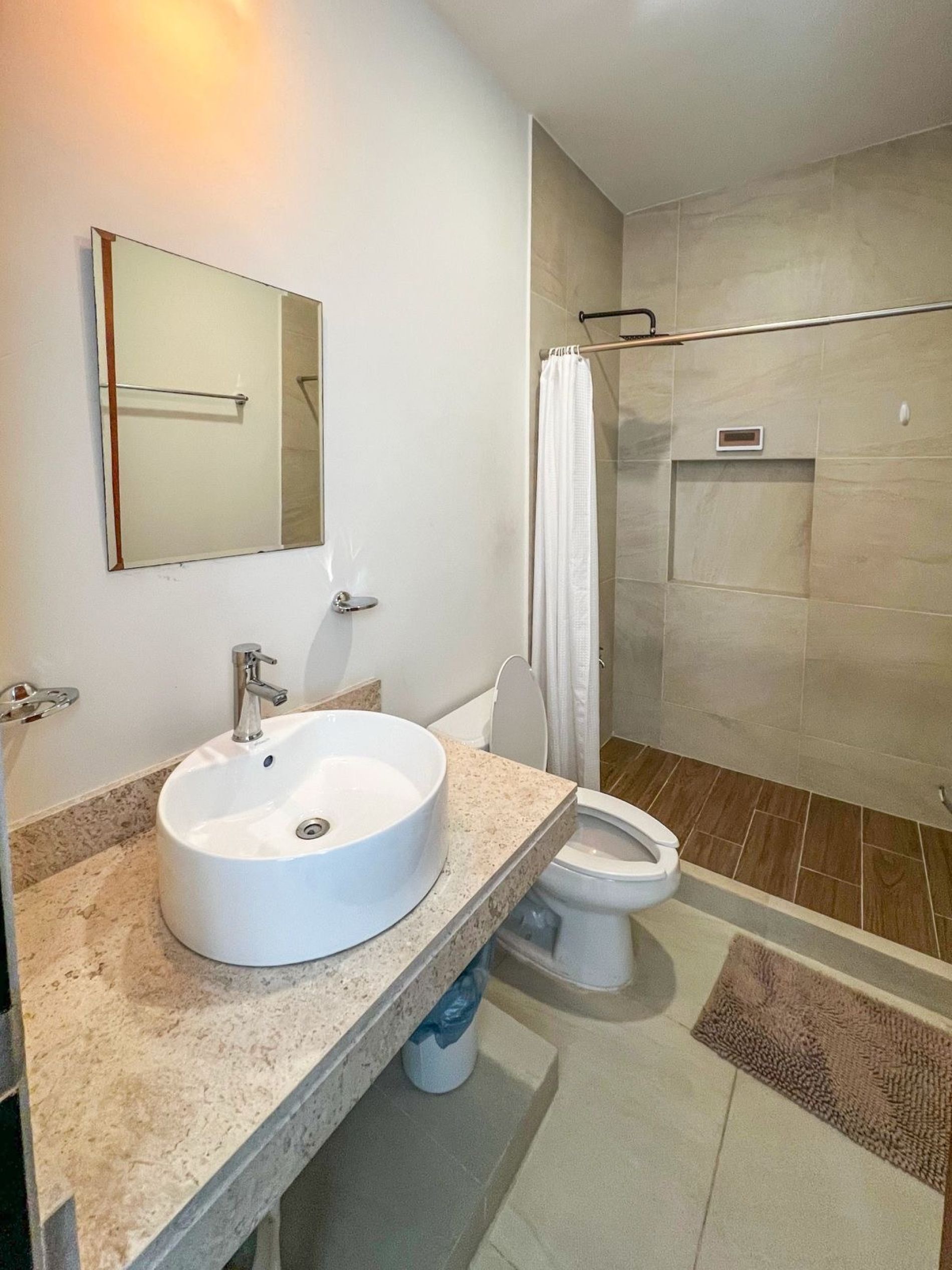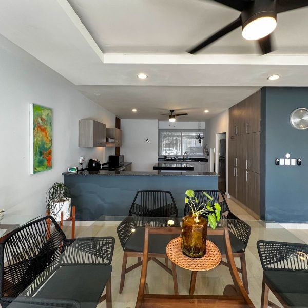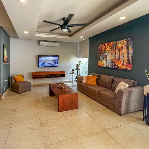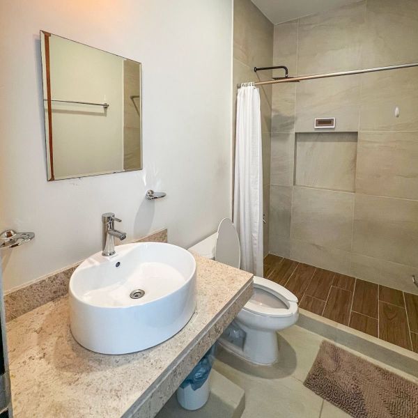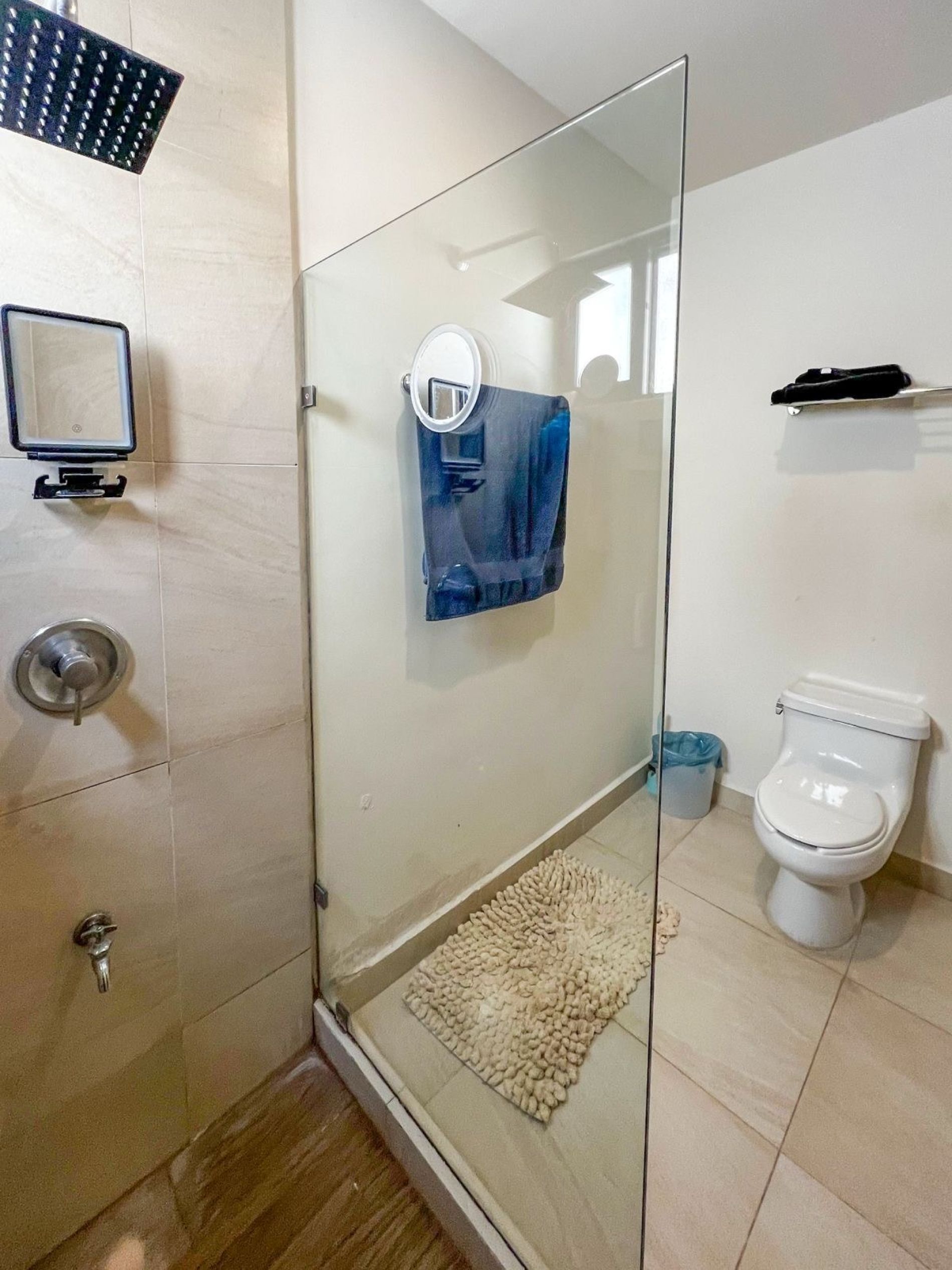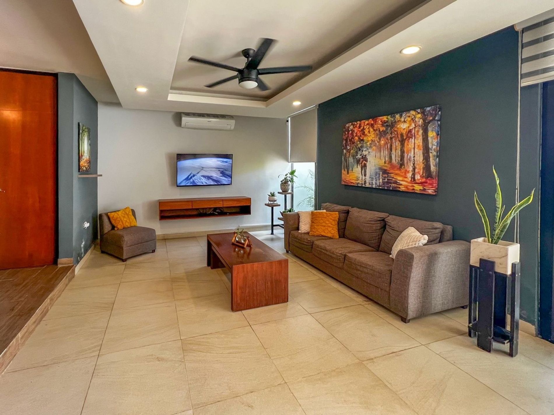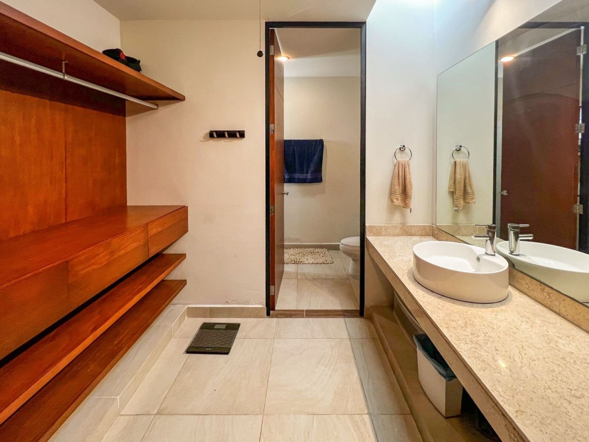 Amplia recámara principal con clóset vestidor y baño completo. Equipada con aire acondicionado de 18,000 btus, cama king size y ventilador en techo.