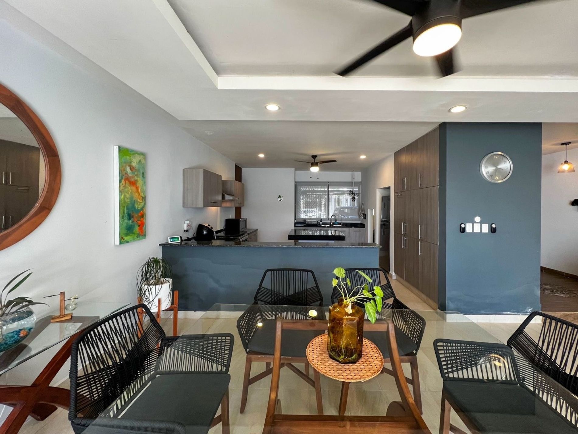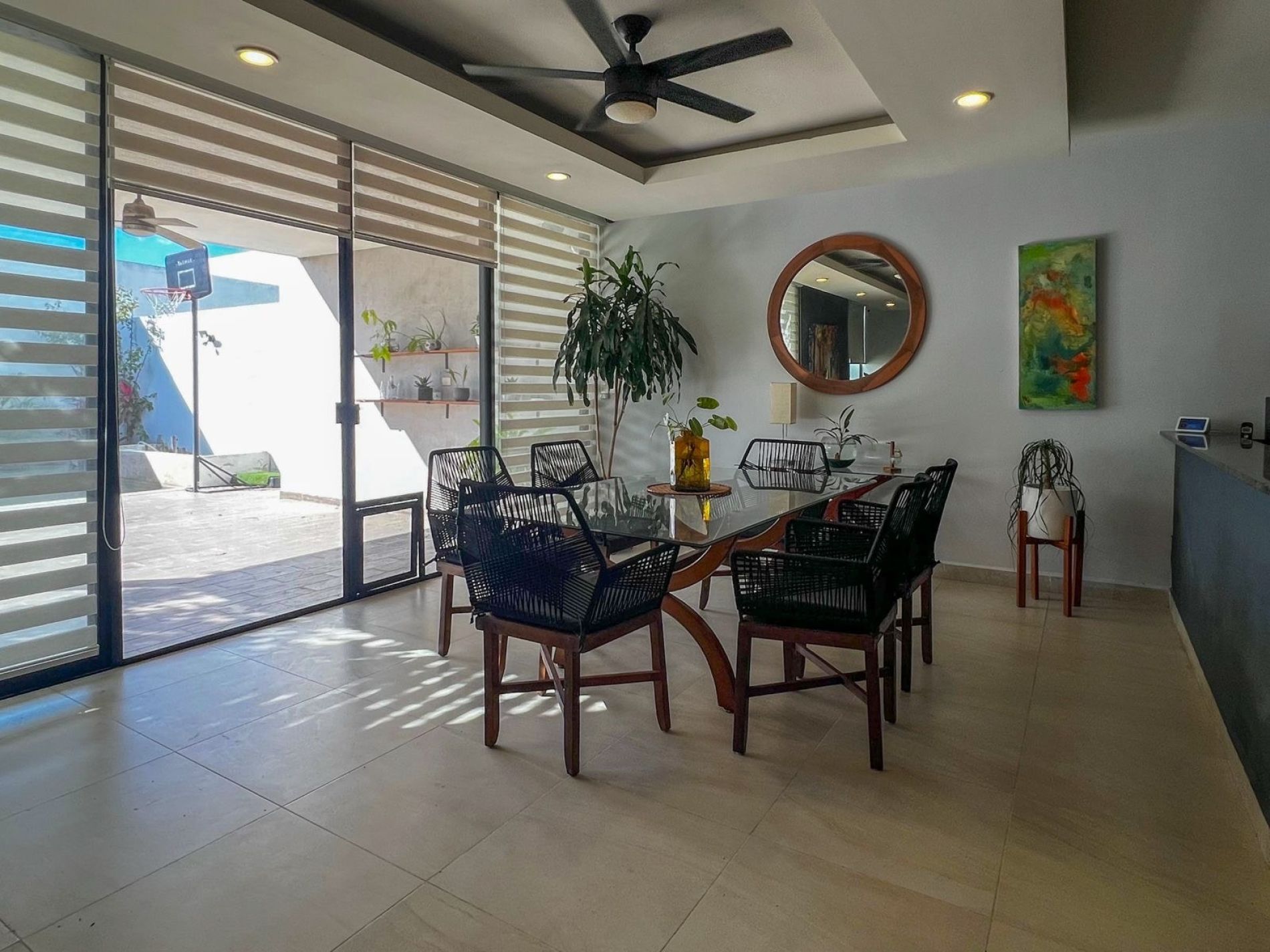 Sala - comedor corrido con ventanal en comedor con vista a la terraza. Aire acondicionado de 24,000 btus para la zona