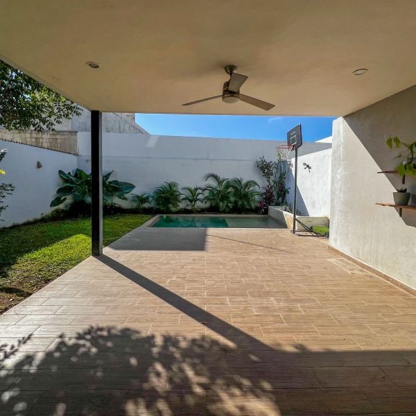 Se renta casa semi-amueblada, a una calle de Av. Temozón; cerca de servicios, comercios y universidades. Consta de 2 pisos, con 3 recámaras, amplia terraza, alberca y garaje para 2 vehículos.