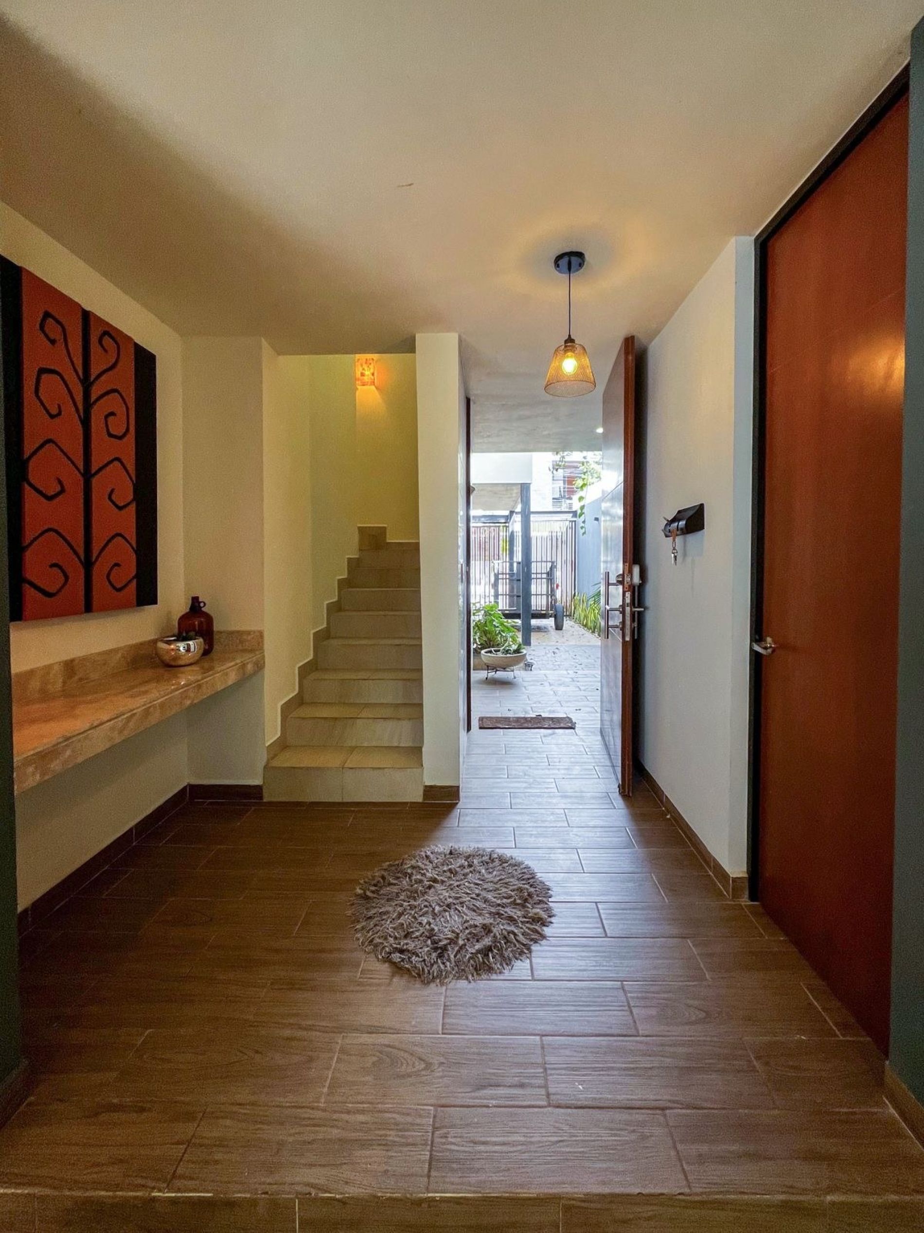 Amplio pasillo de servicio que conecta con garaje, terraza, cuarto de servicio y cocina