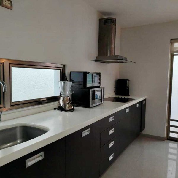 Horno microondas, Tostador, Freidora de aire, Licuadora, Refrigerador, Parrilla empotrada, Campana, espejos, Canceleria en baños, Aires acondicionados y Ventiladores.
