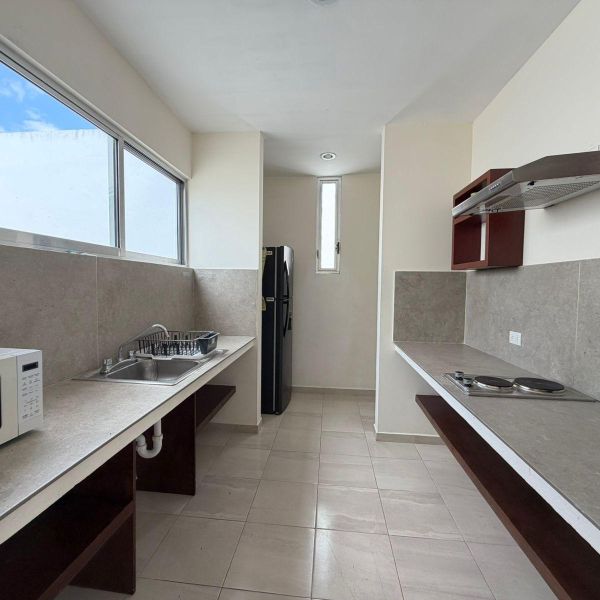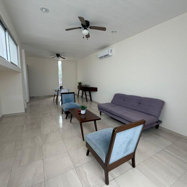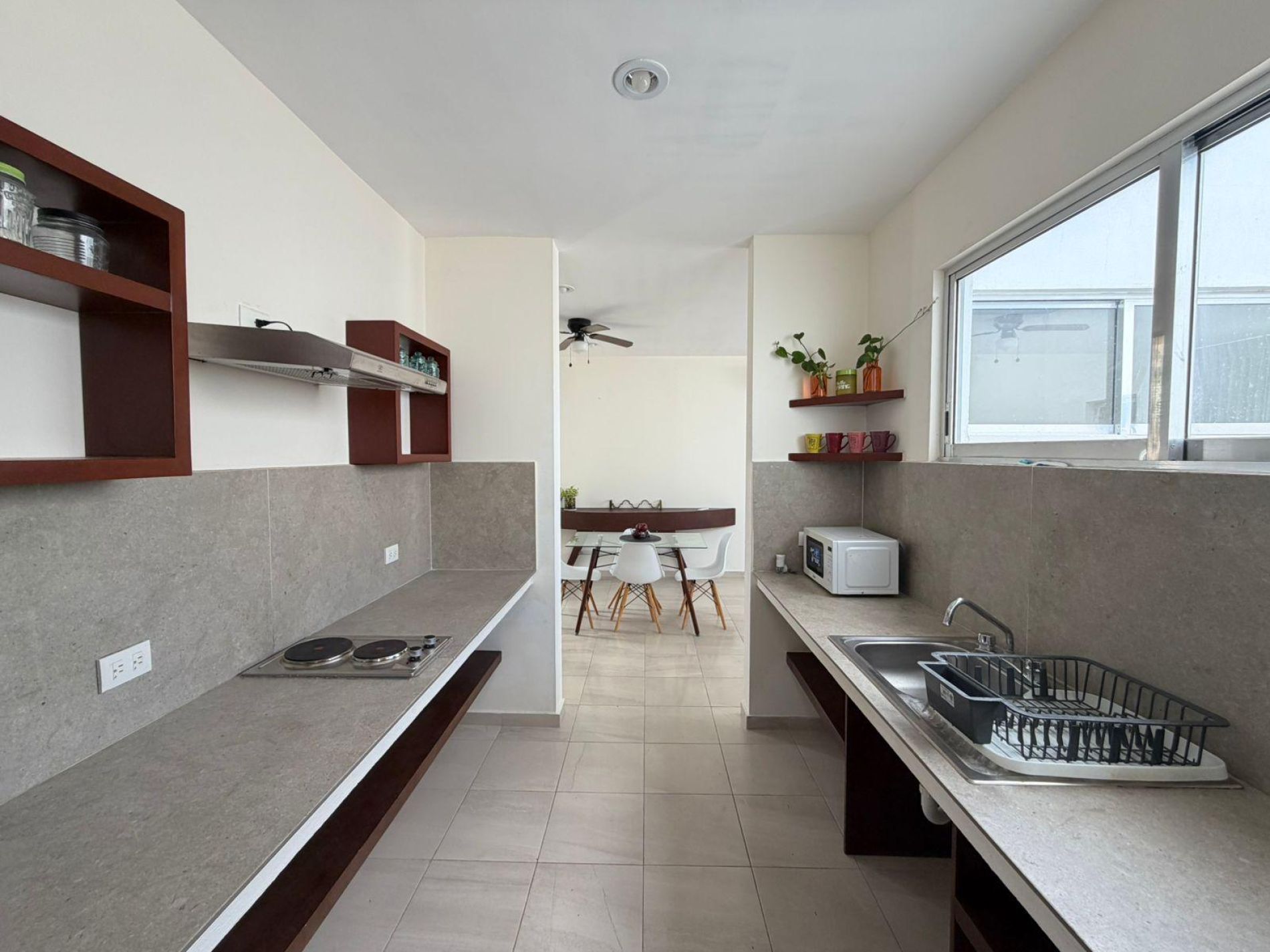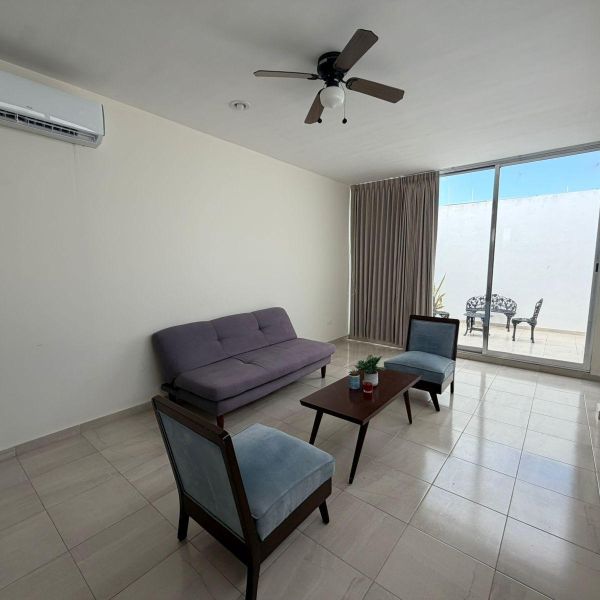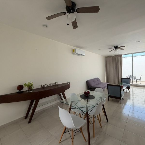 Departamento amueblado, de 1 recámara, 1 1/2 baño, en residencial Campocielo, un complejo de casas y departamentos en el norte Mérida, a segundos de la carretera Progreso.