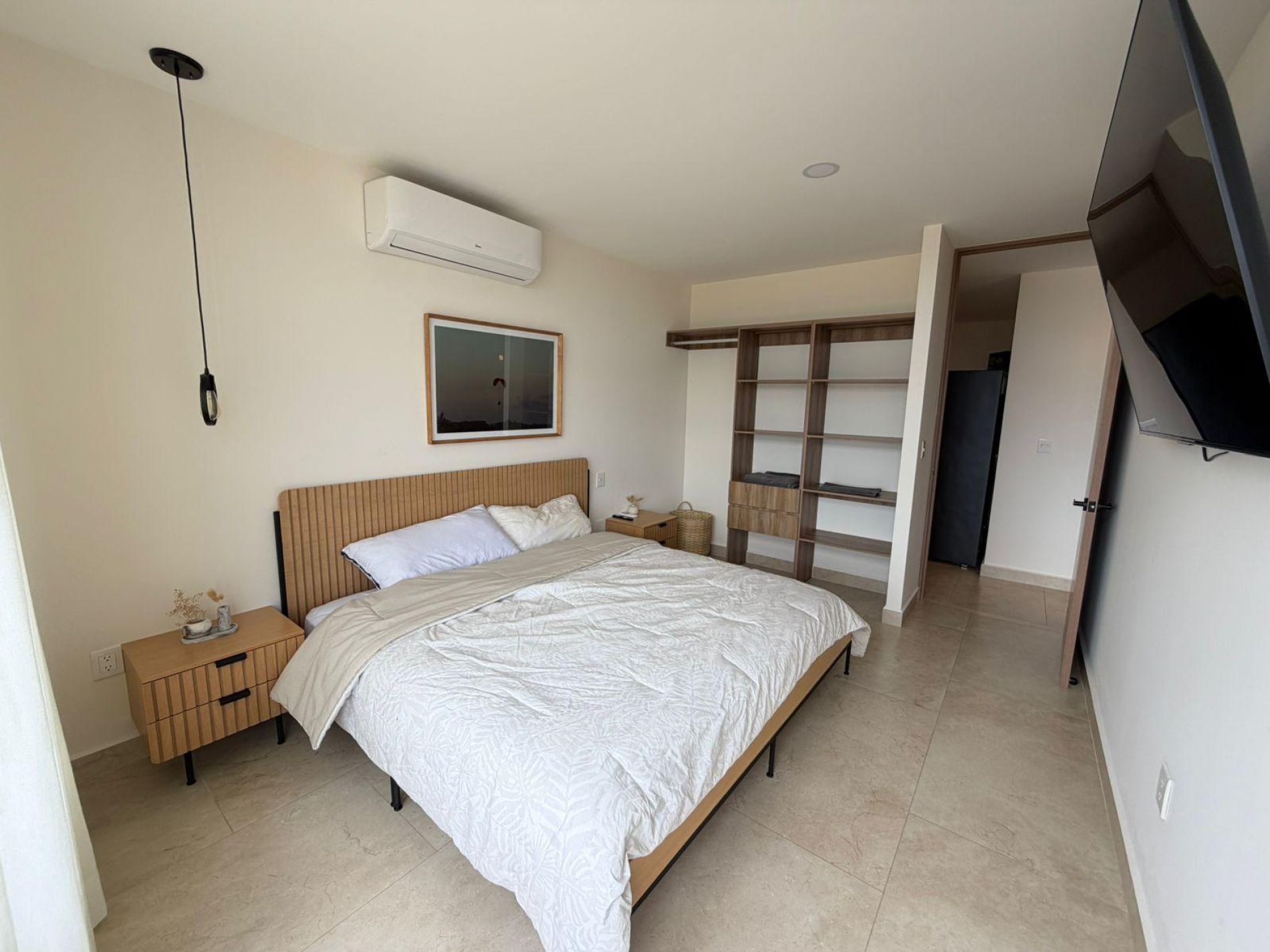 Recámara con cama king size, TV, clóset vestidor y baño completo
