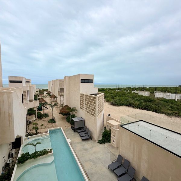 Exclusivo departamento frente al mar en Pueblo Telchac Puerto, ubicado dentro del desarrollo Bajareque Telchac. Totalmente amueblado y equipado, a estrenar y en perfectas condiciones.