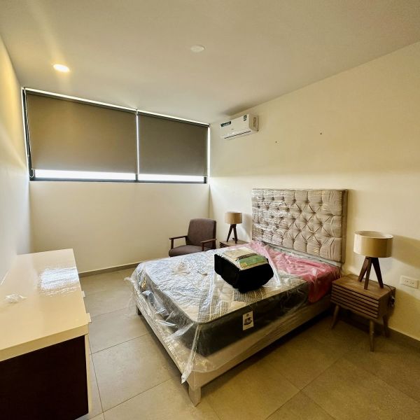 Departamento amueblado, de 2 recamaras, en complejo Noah, ubicado en la colonia Santa Gertrudis Copó con fácil acceso a periférico. El complejo cuenta con distintas amenidades.