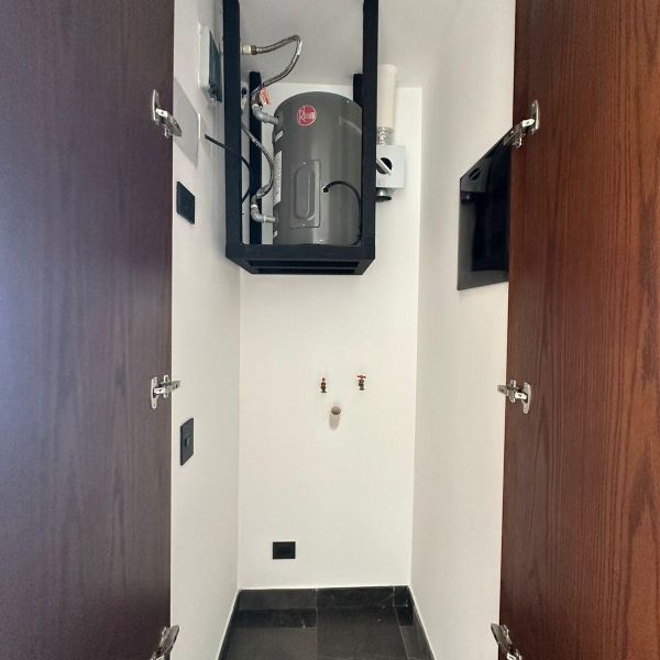 Cocina equipada con con parrilla, campana, y horno eléctrico