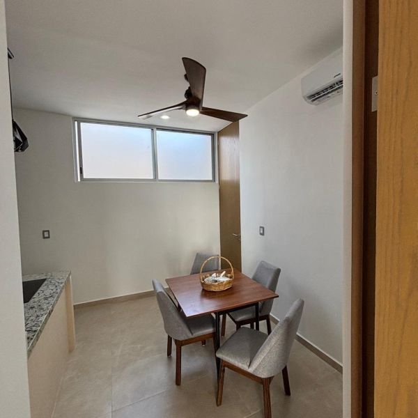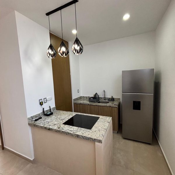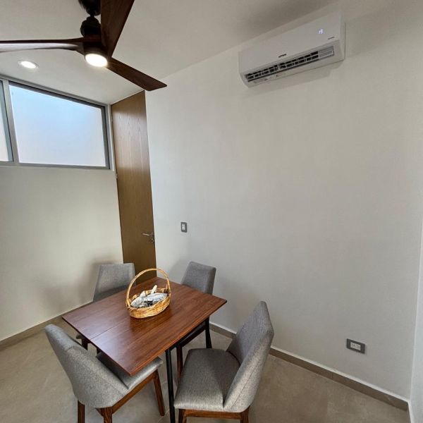 Departamento en segundo piso, a estrenar, en complejo con amenidades en Temozón Norte; a 8 minutos de La Isla, restaurantes y otros comercios.