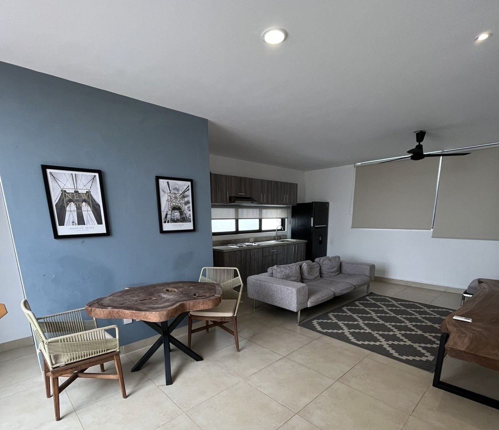 Departamento amueblado y equipado, en privada Zen con amenidades; cerca de centros comerciales, farmacias y tiendas de conveniencia.