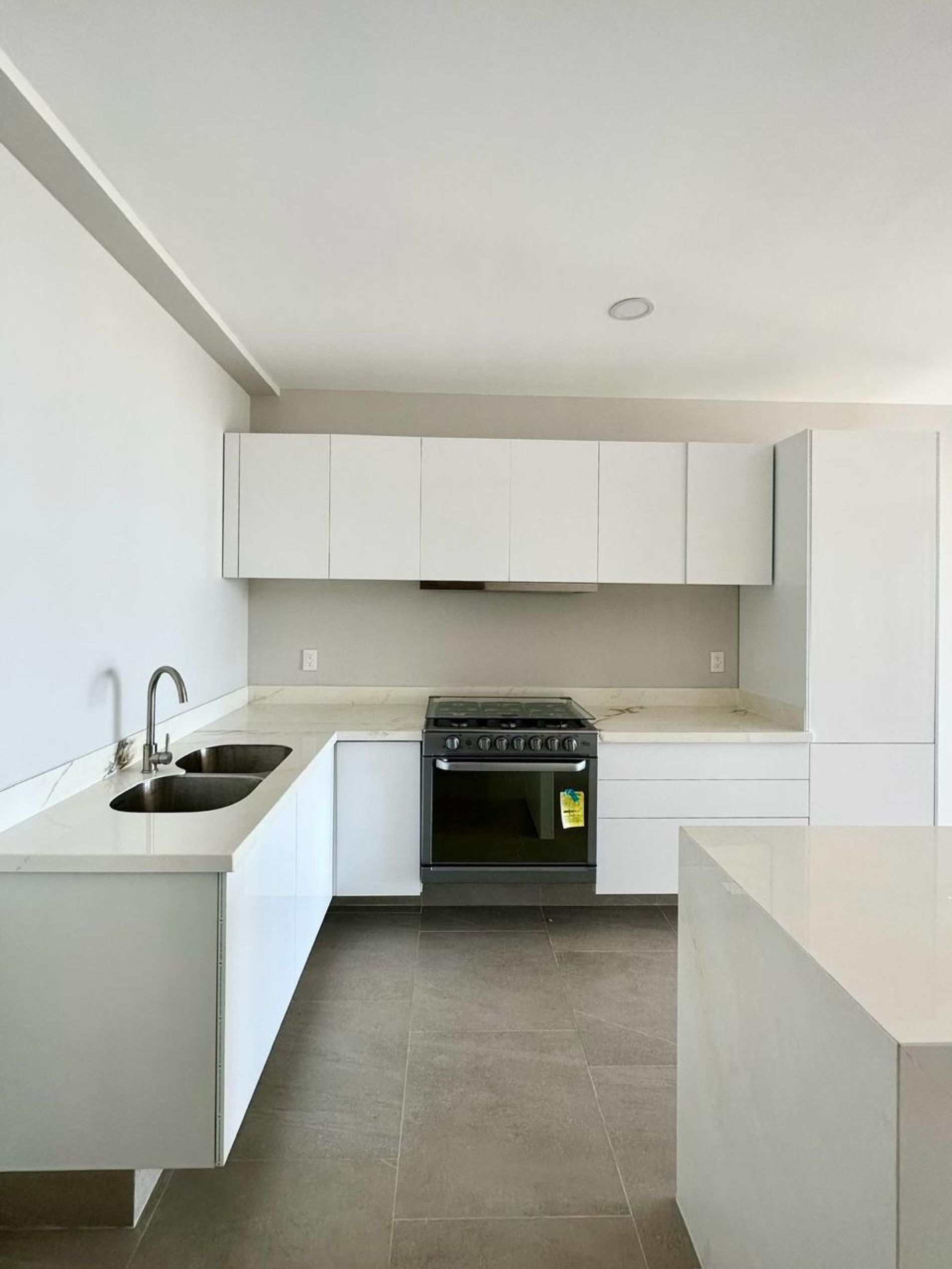 Cocina equipada con barra de granito, estufa, campana y amplias alacenas