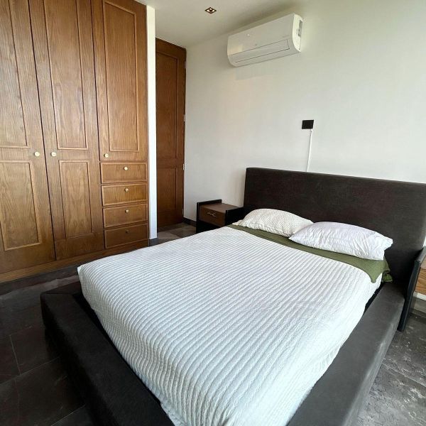 Recámara secundaria con cama y closet