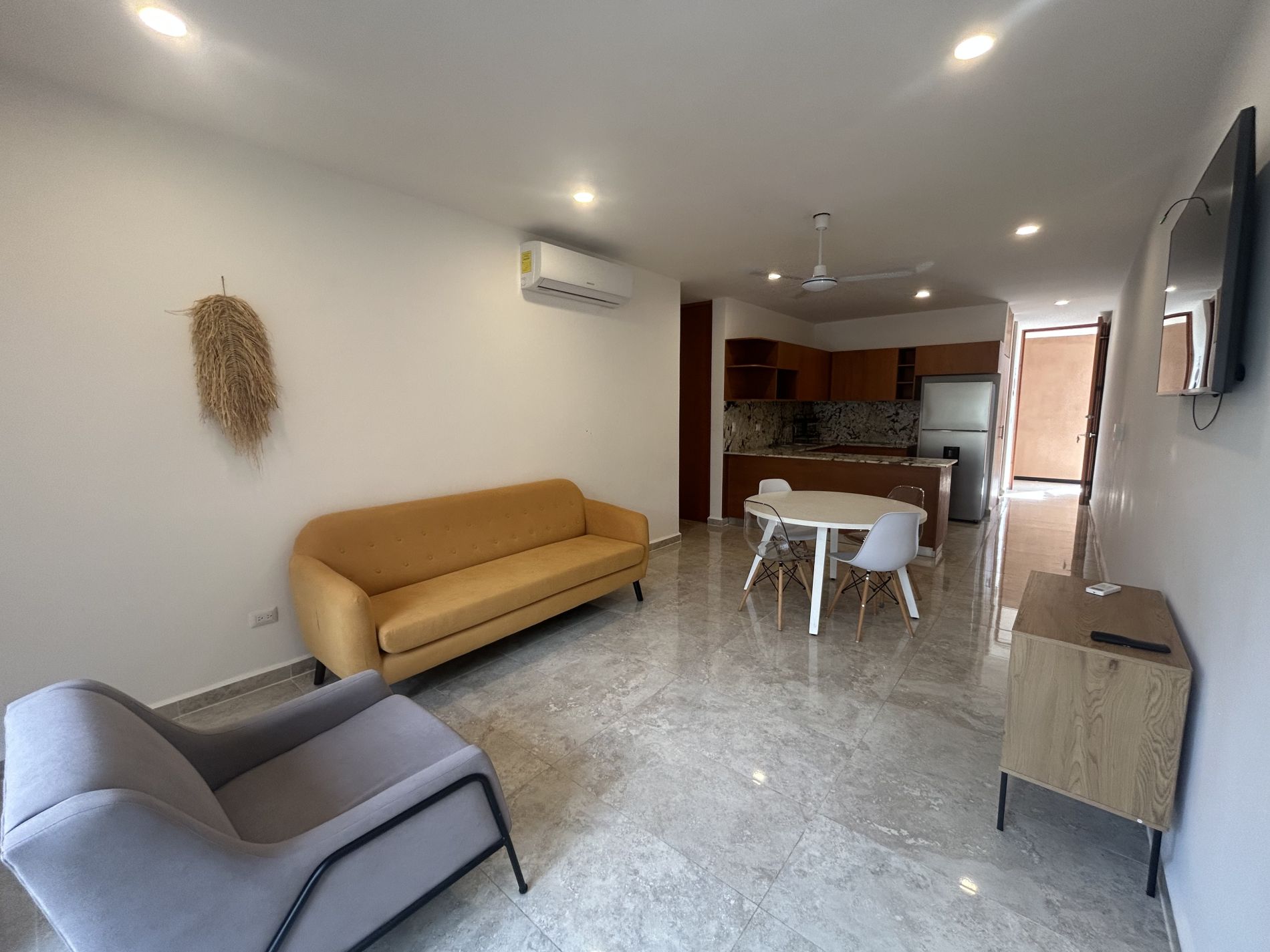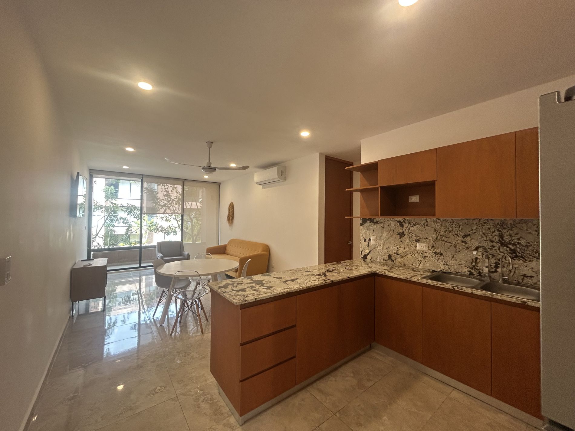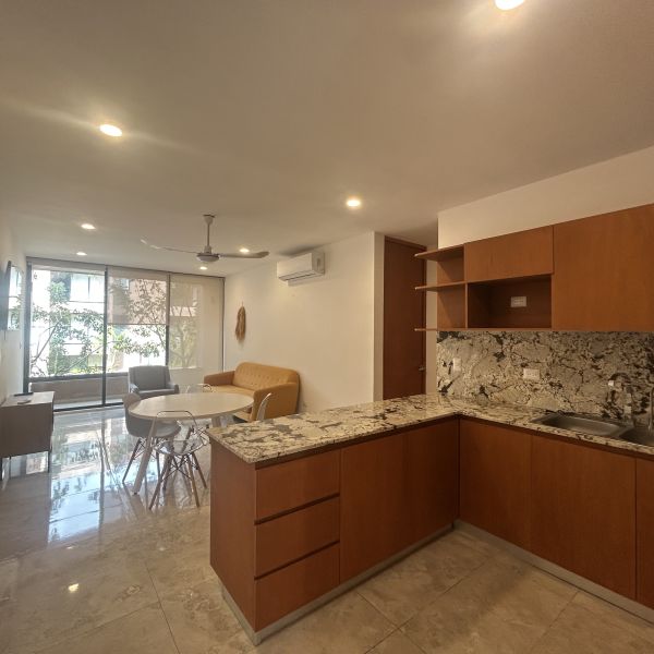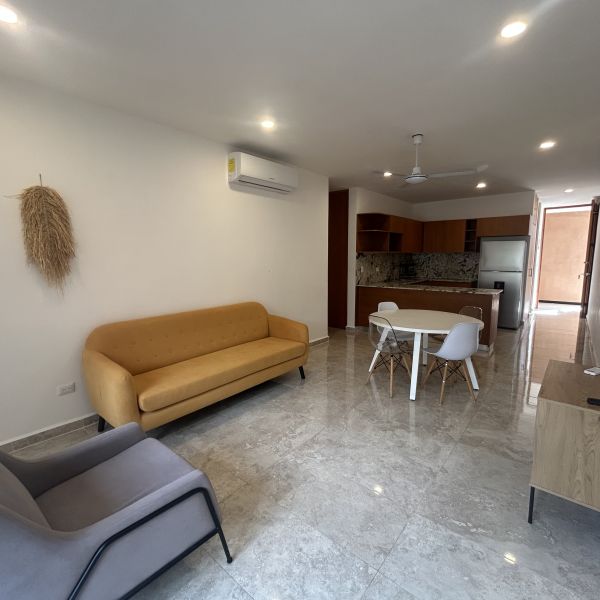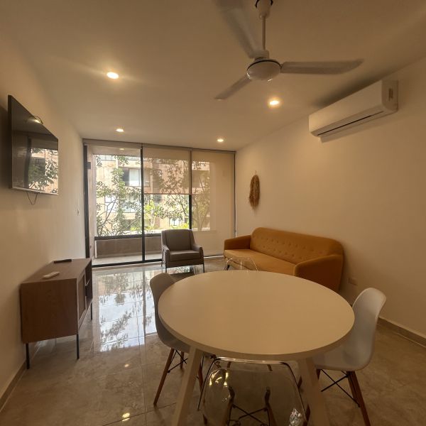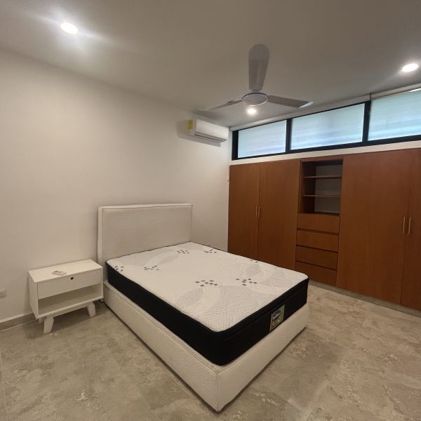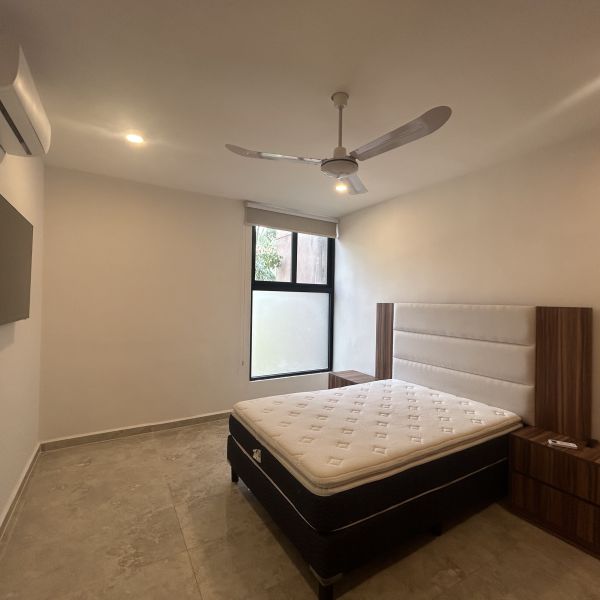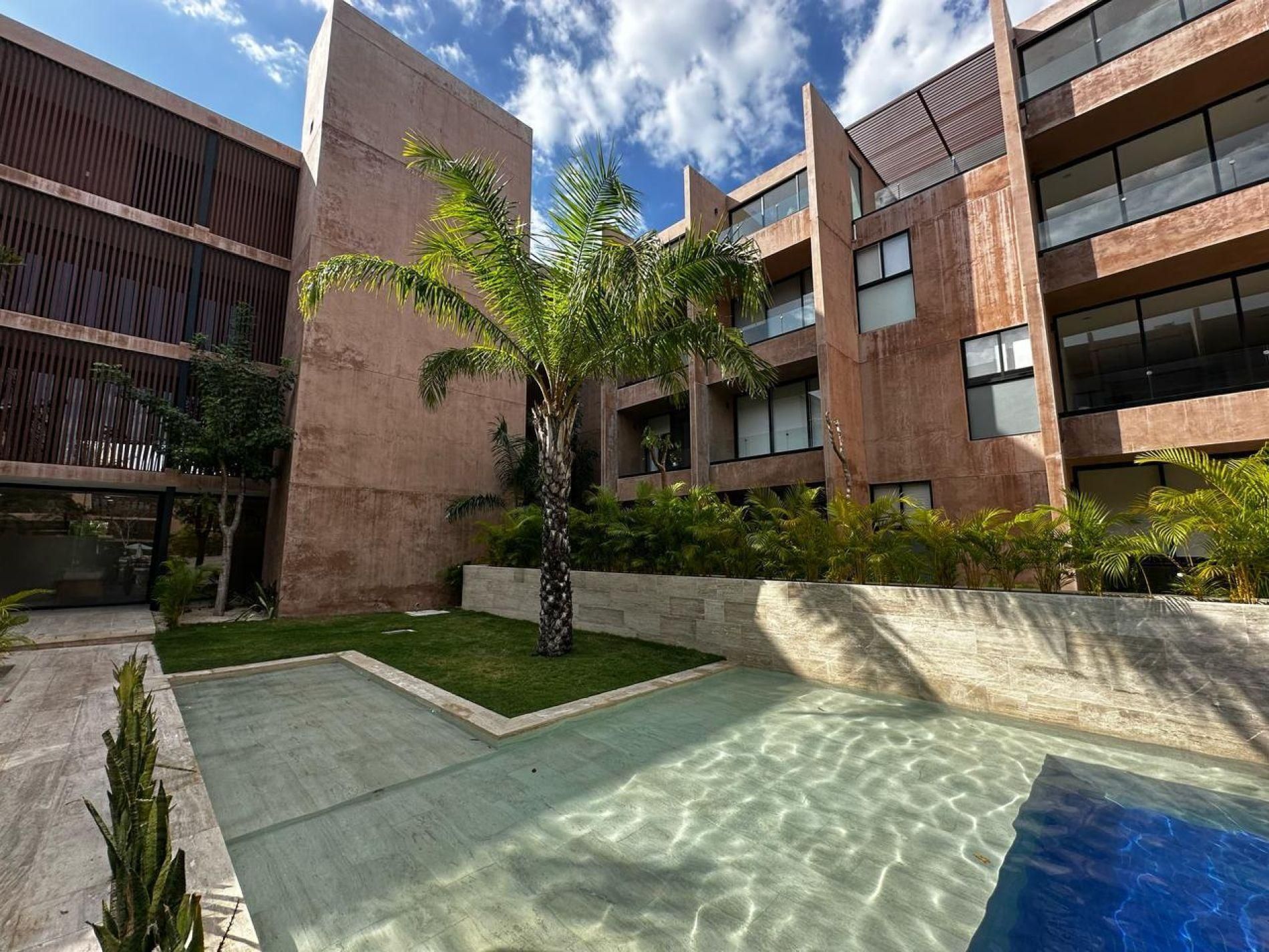 Departamento de 2 recámaras, amueblado, en complejo de departamentos en Temozon Norte; a pocos minutos de la Isla, universidades y acceso rápido a periférico.