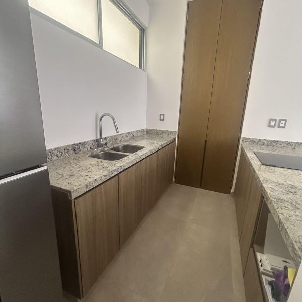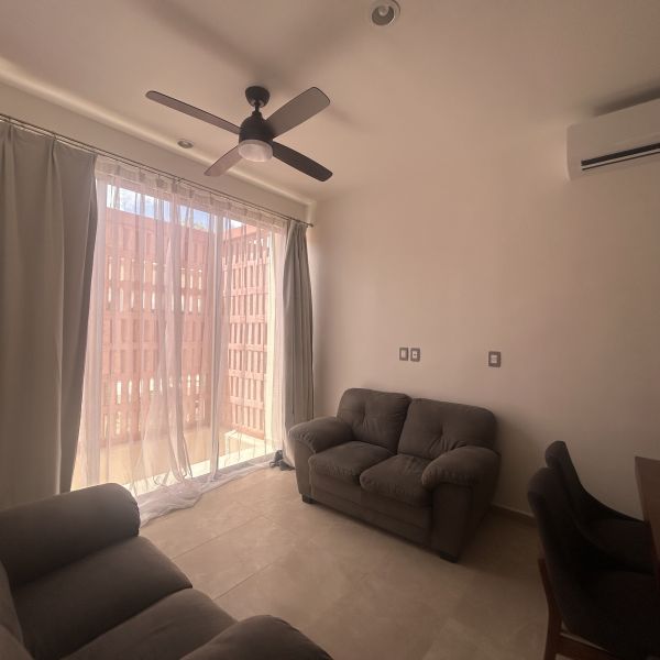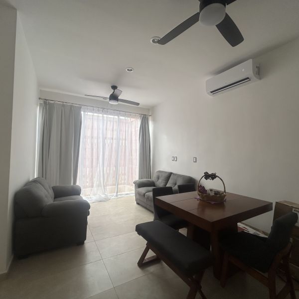 Departamento de 2 recámaras amueblado, en PLANTA BAJA, en complejo nuevo con amenidades; a 10 minutos de plaza La Isla, acceso fácil a periférico y otros comercios.