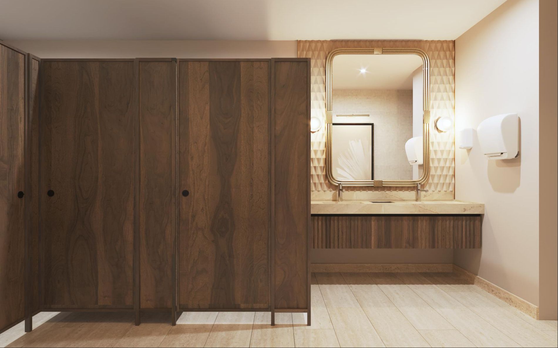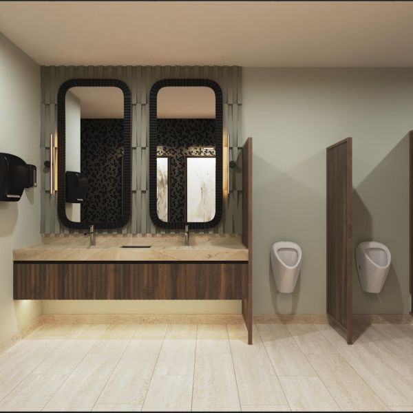 Cancel de hoja en el área de la ducha y espejos en baños