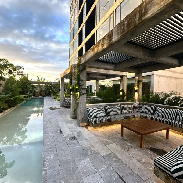 Amplio departamento equipado, ubicado en complejo de 48 departamentos con amenidades, distribuidos en 2 torres, con 2 elevadores.