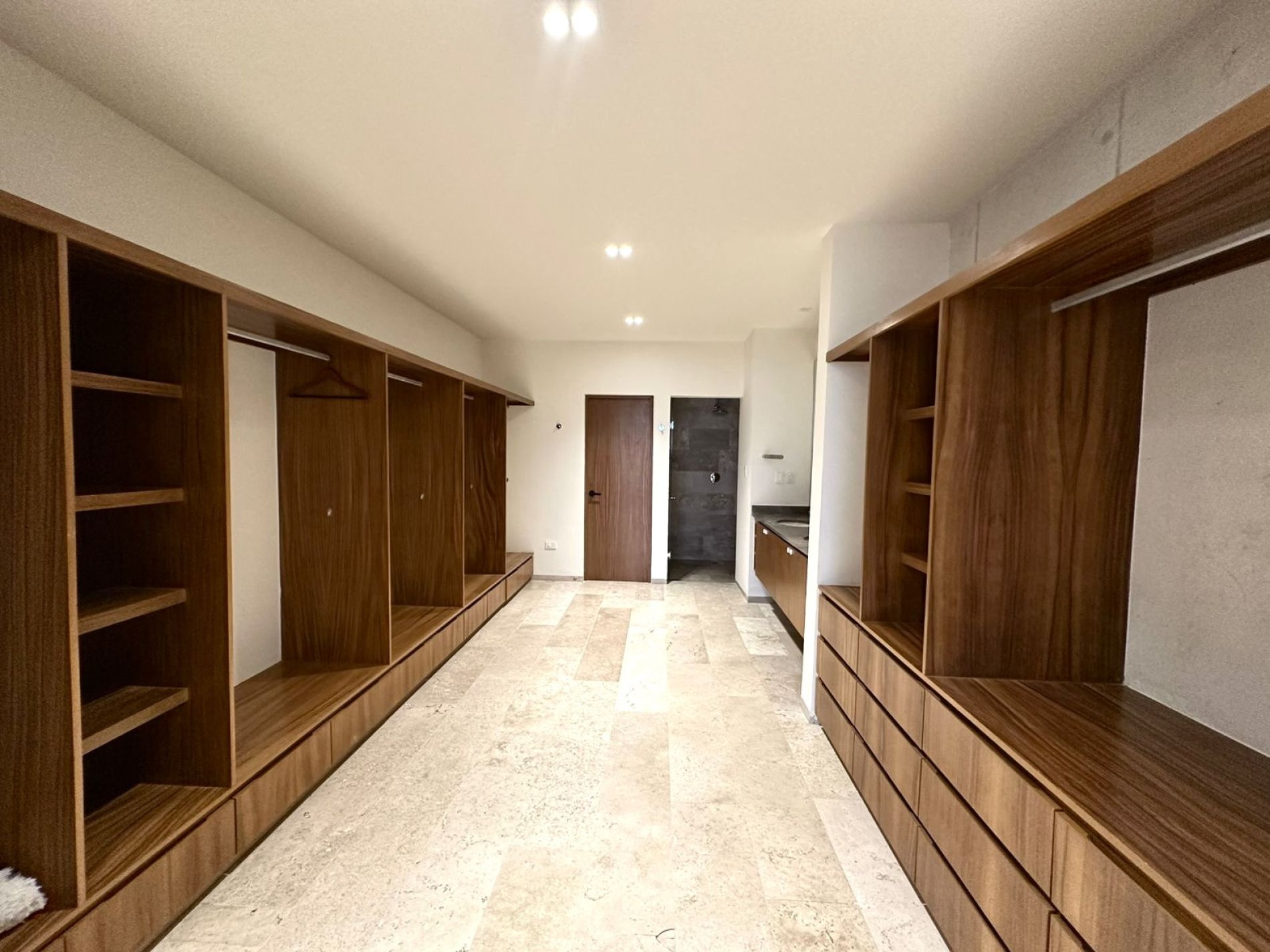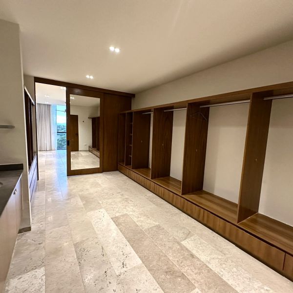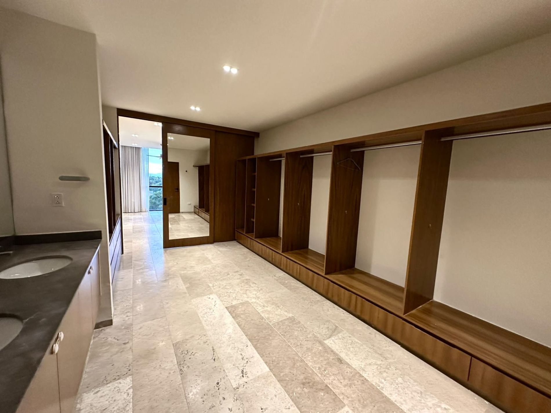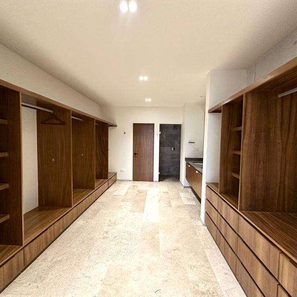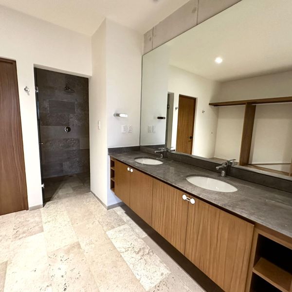 Recámara principal con clóset vestidor y baño completo con doble lavabo