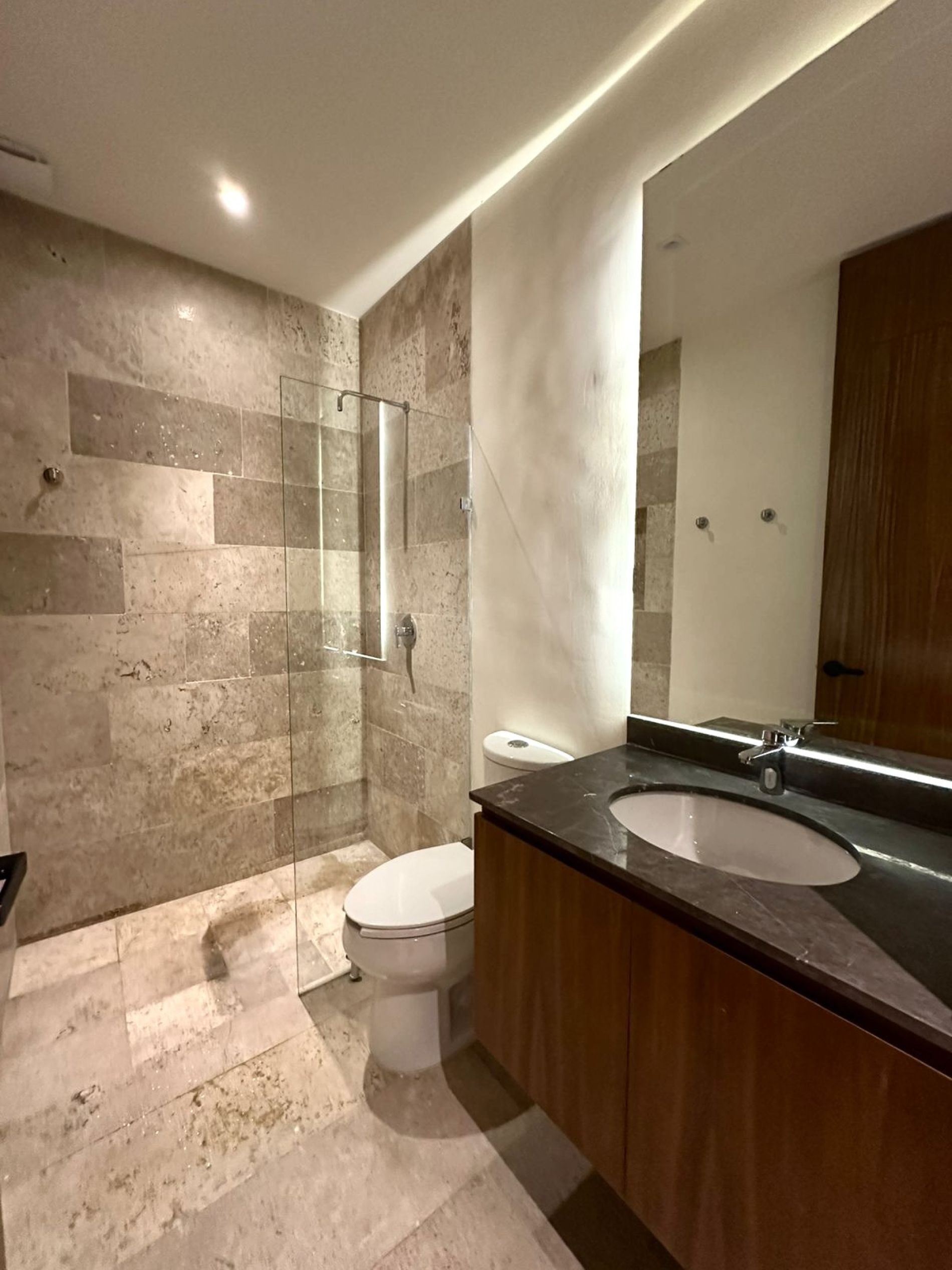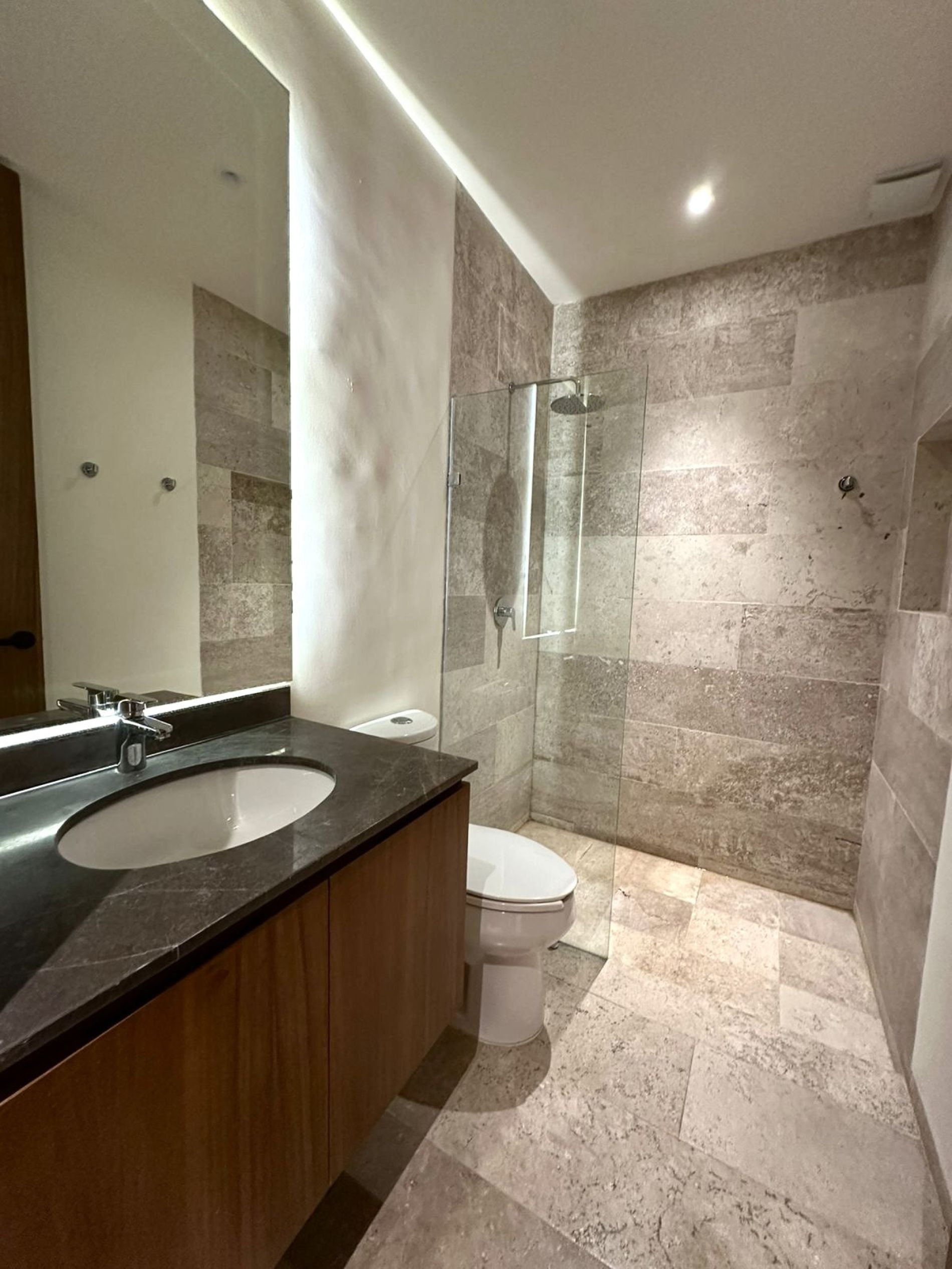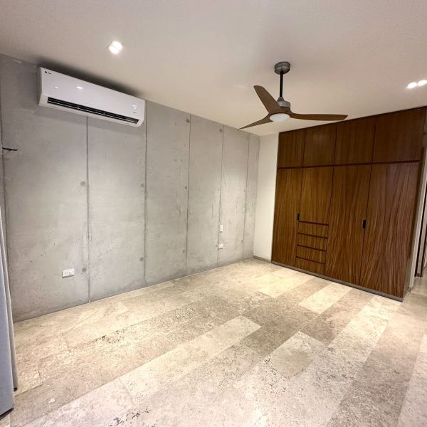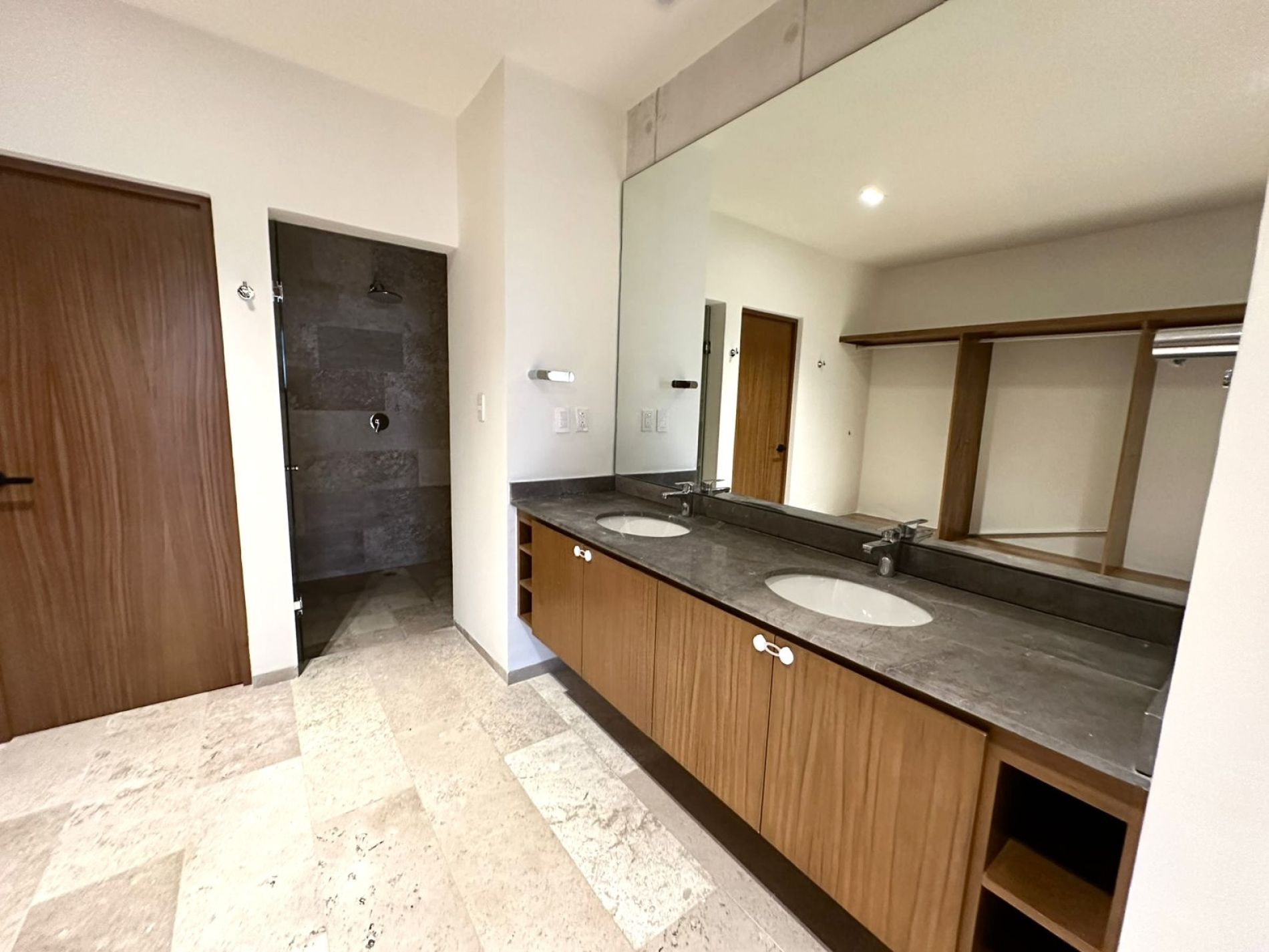 Recámara principal con clóset vestidor y baño completo con doble lavabo