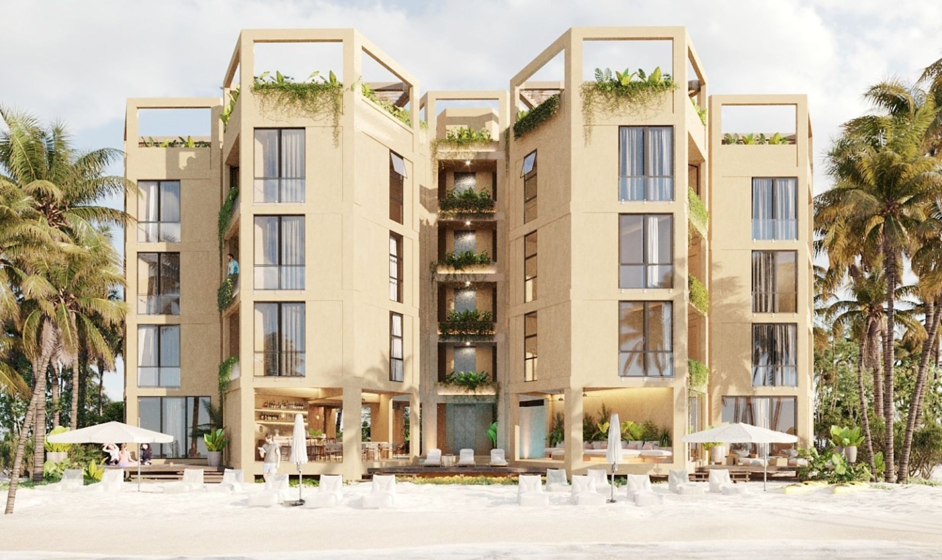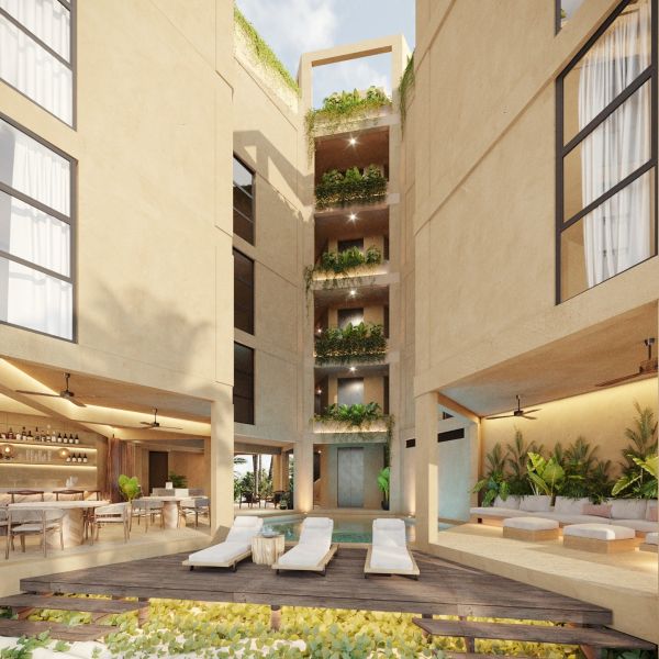 Desarrollo de 13 departamentos distribuidos en una torre de 5 niveles frente a la playa en San Crisanto, Yucatán. Rodeado de playas prácticamente vírgenes, aguas cristalinas, arena blanca, palmeras de coco y manglares, este desarrollo brinda un entorno sereno ideal para disfrutar del mar y la tranquilidad.