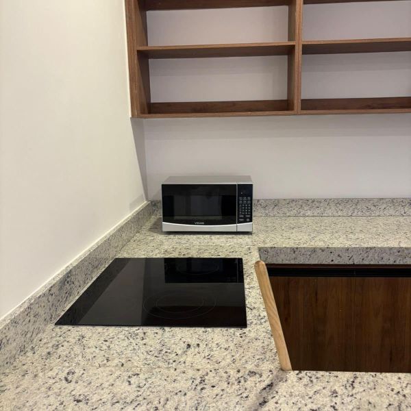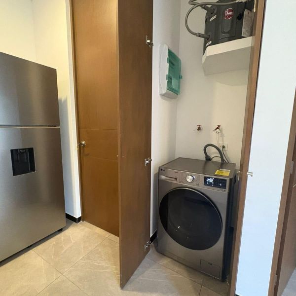El departamento está listo para habitar y únicamente le hace falta un sofá en la sala.