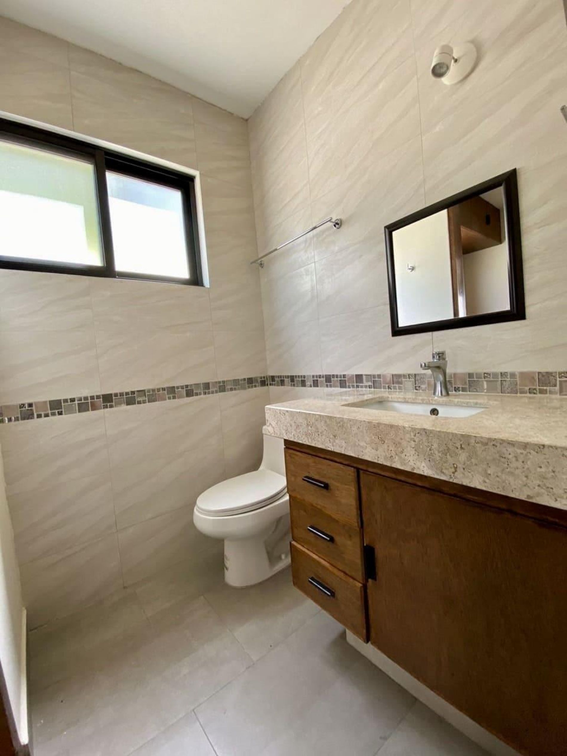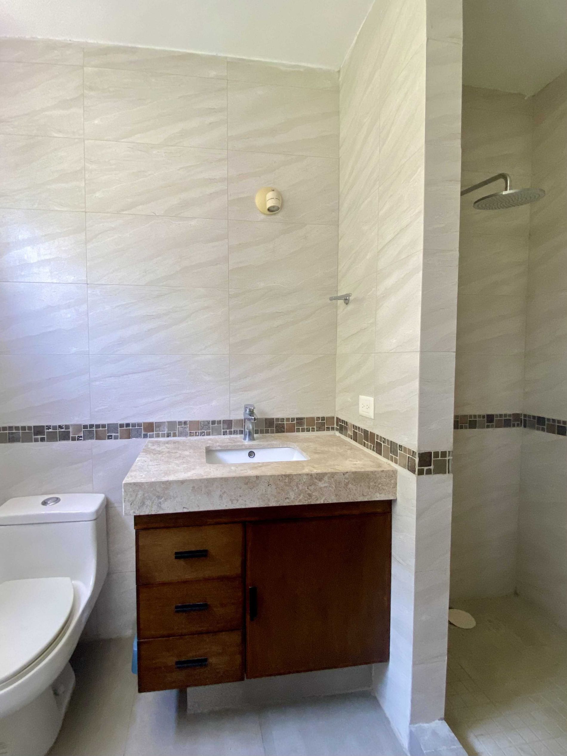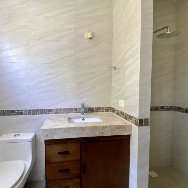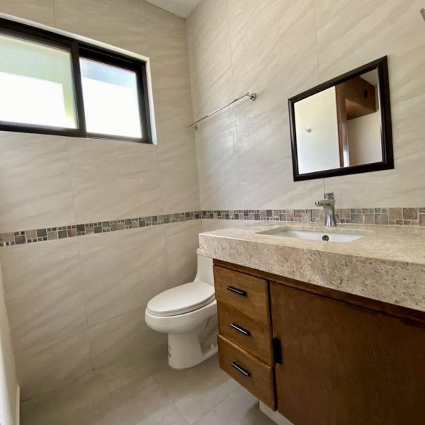 Baño completo que comparten ambas recámaras secundarias