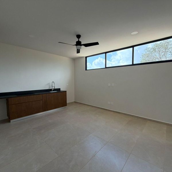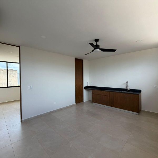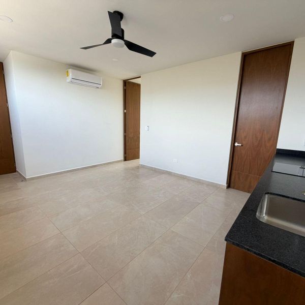 Departamento sin muebles, en el primer nivel de un complejo de departamentos, con control de acceso. Dentro de la colonia Temozón Norte; con fácil acceso a periférico, centros comerciales y universidades.