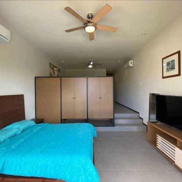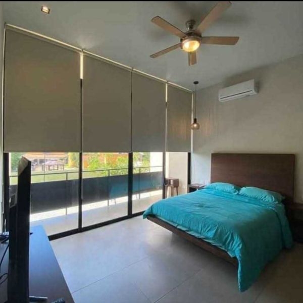 2 ventiladores y 2 aires acondicionados en las áreas de recámara