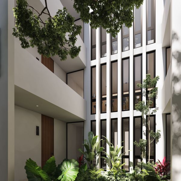 Este complejo consta de 45 departamentos de 1 y 2 recámaras, con elevador y amenidades diseñadas para complementar un estilo de vida cómodo y contemporáneo. Se ubica en Temozón Norte, una zona de alta plusvalía en Mérida, con excelente conectividad gracias a su cercanía al periférico y a menos de 15 minutos de servicios médicos, plazas comerciales y universidades.