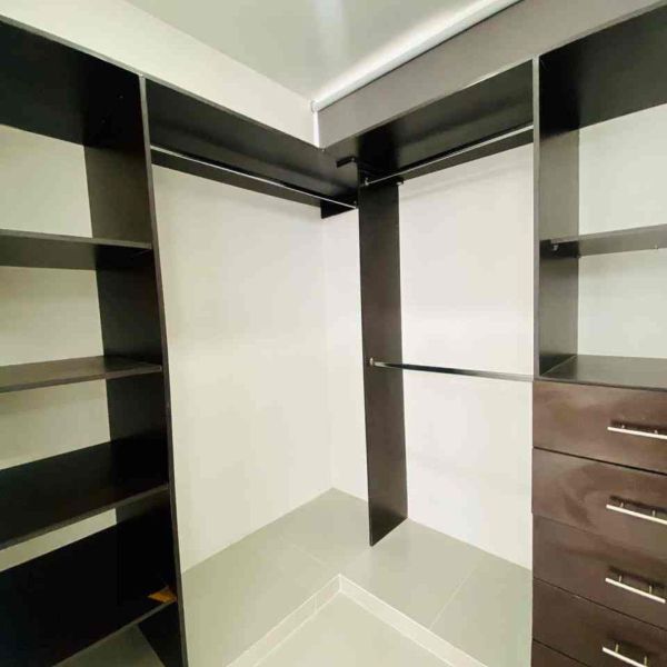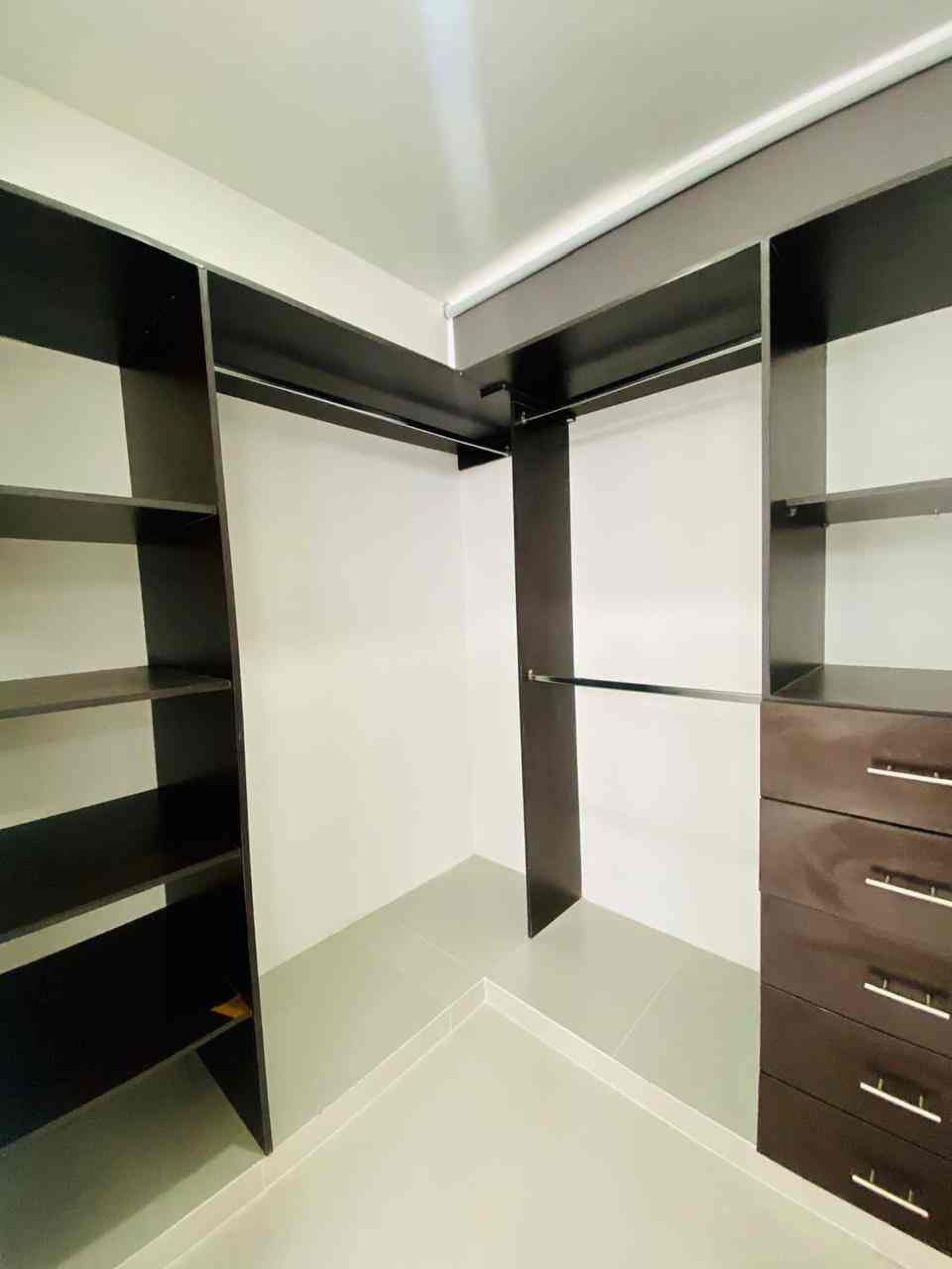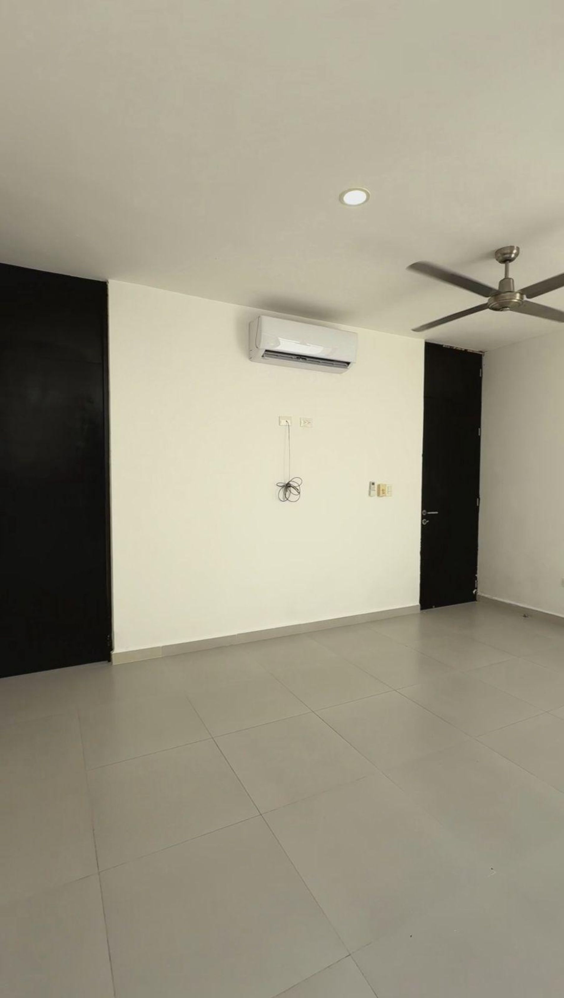 Recámara principal con clóset vestidor, baño completo, ventilador y aire acondicionado.