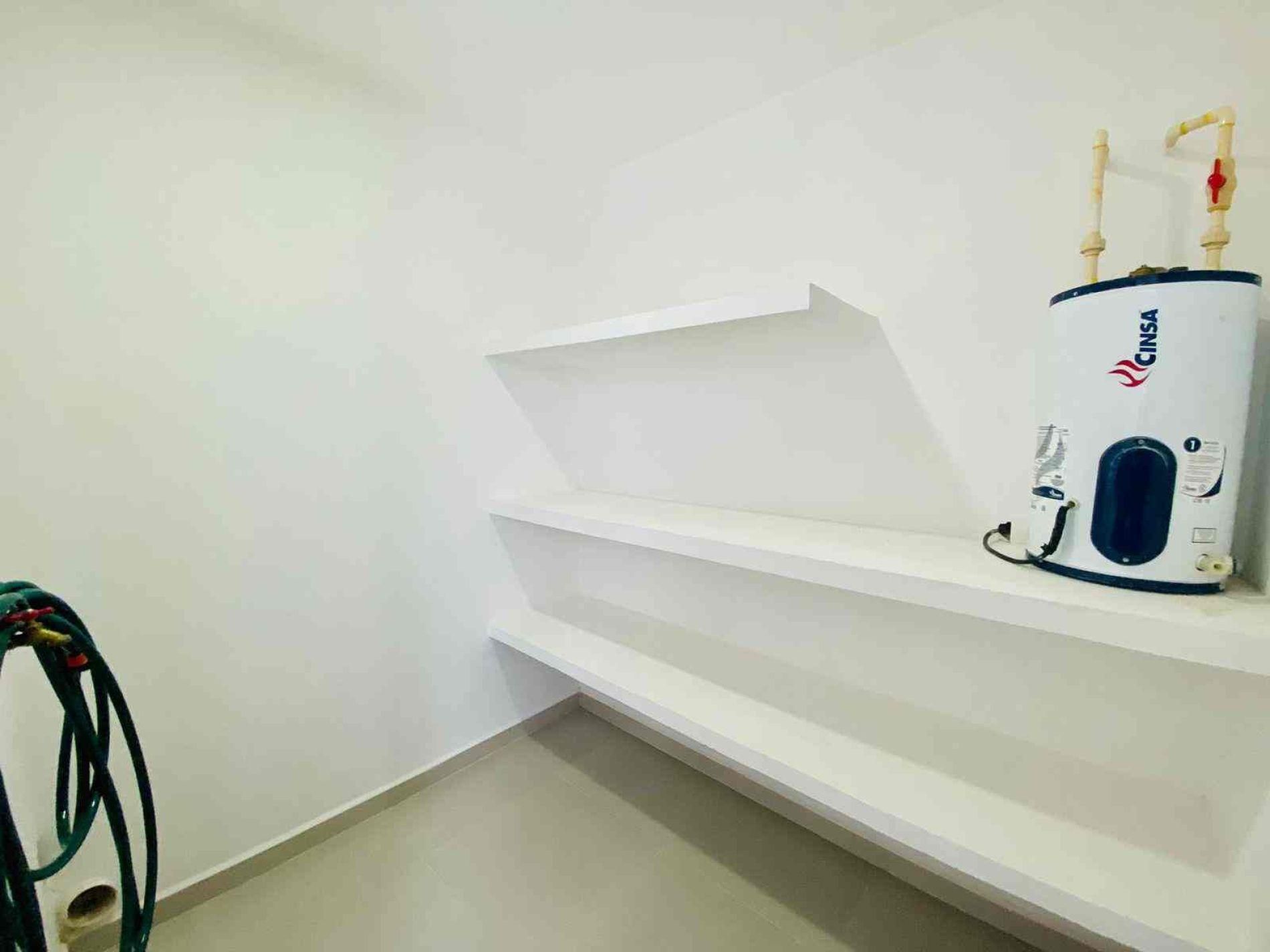 Área de lavado con boiler eléctrico e instalación para lavadora