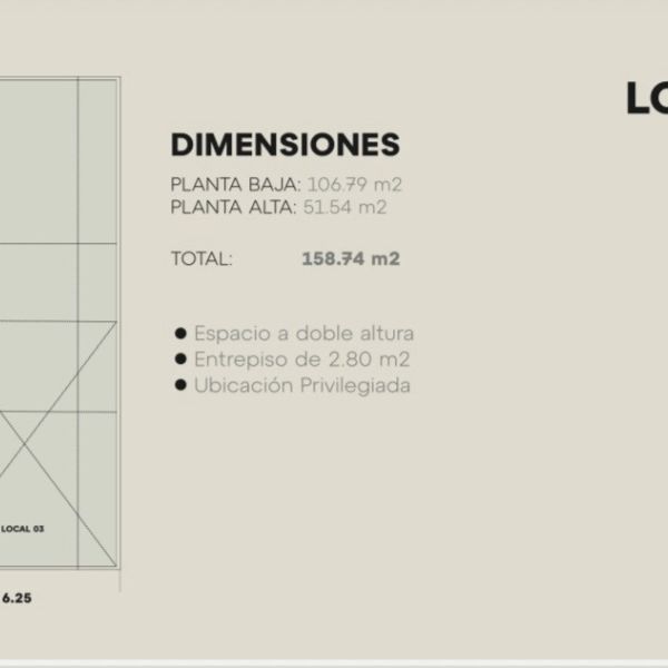 Locales comerciales con 108m2 en planta baja y 50m2 de planta alta.
