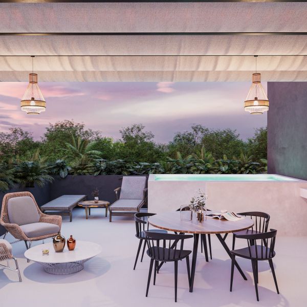 Desarrollo de 41 unidades departamentales ubicado en Temozón Norte, Mérida, diseñado para adaptarse a diferentes estilos de vida gracias a sus diversas tipologías. Ofrece espacios funcionales, estéticos y seguros, con áreas verdes, fácil acceso y amplio estacionamiento.