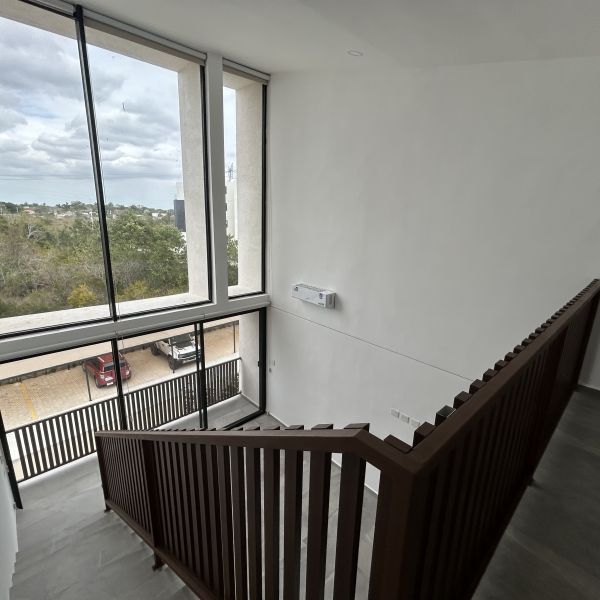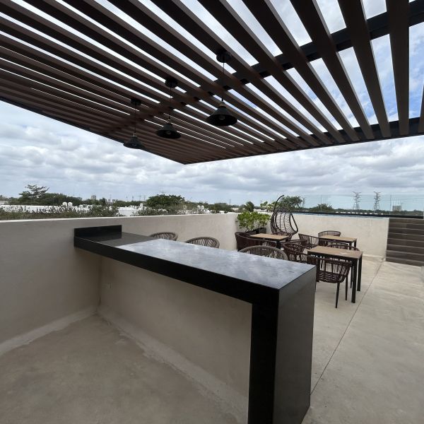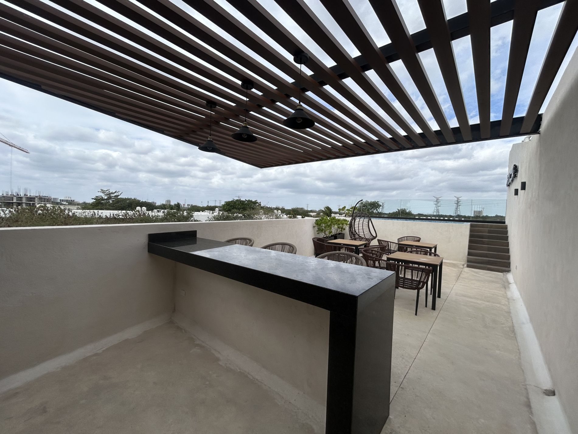 Loft de 1 recámara en complejo con amenidades al norte de Mérida; a 10 minutos de la Isla, hospitales y centros comerciales.