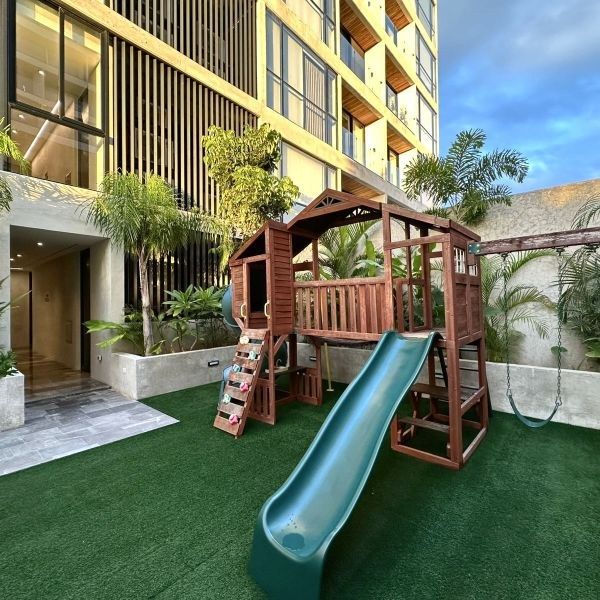 Amplio departamento equipado, ubicado en complejo de 48 departamentos con amenidades, distribuidos en 2 torres, con 2 elevadores.