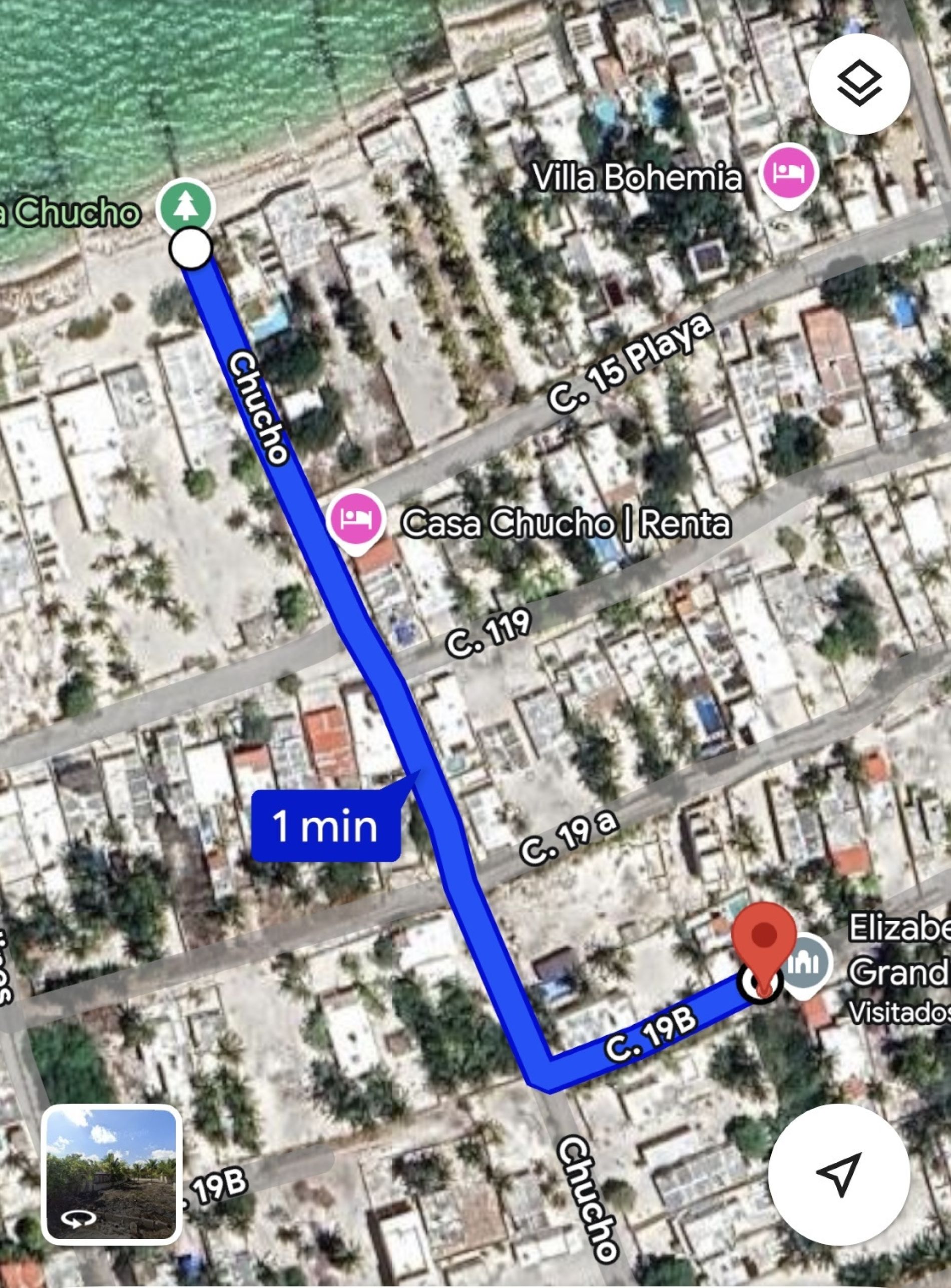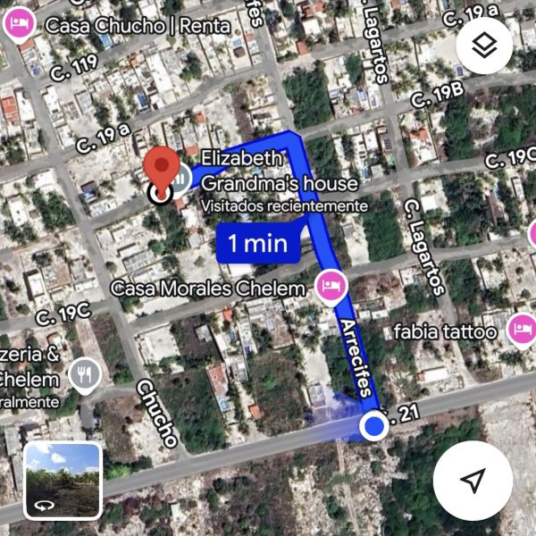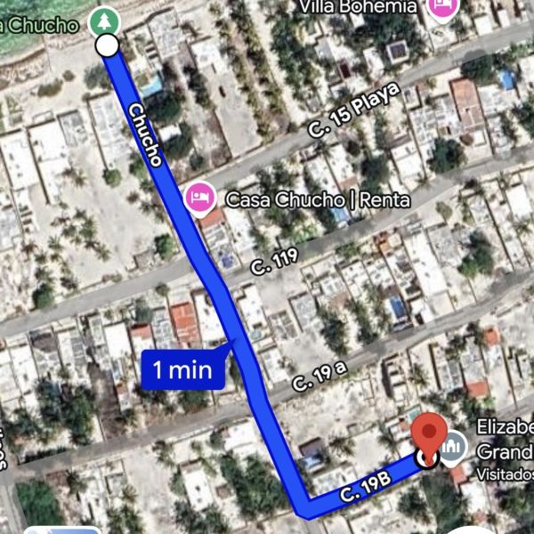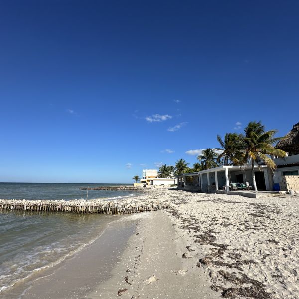 Se ubica a 300 m de la carretera principal Progreso - Chuburna y a 270 m de la playa.