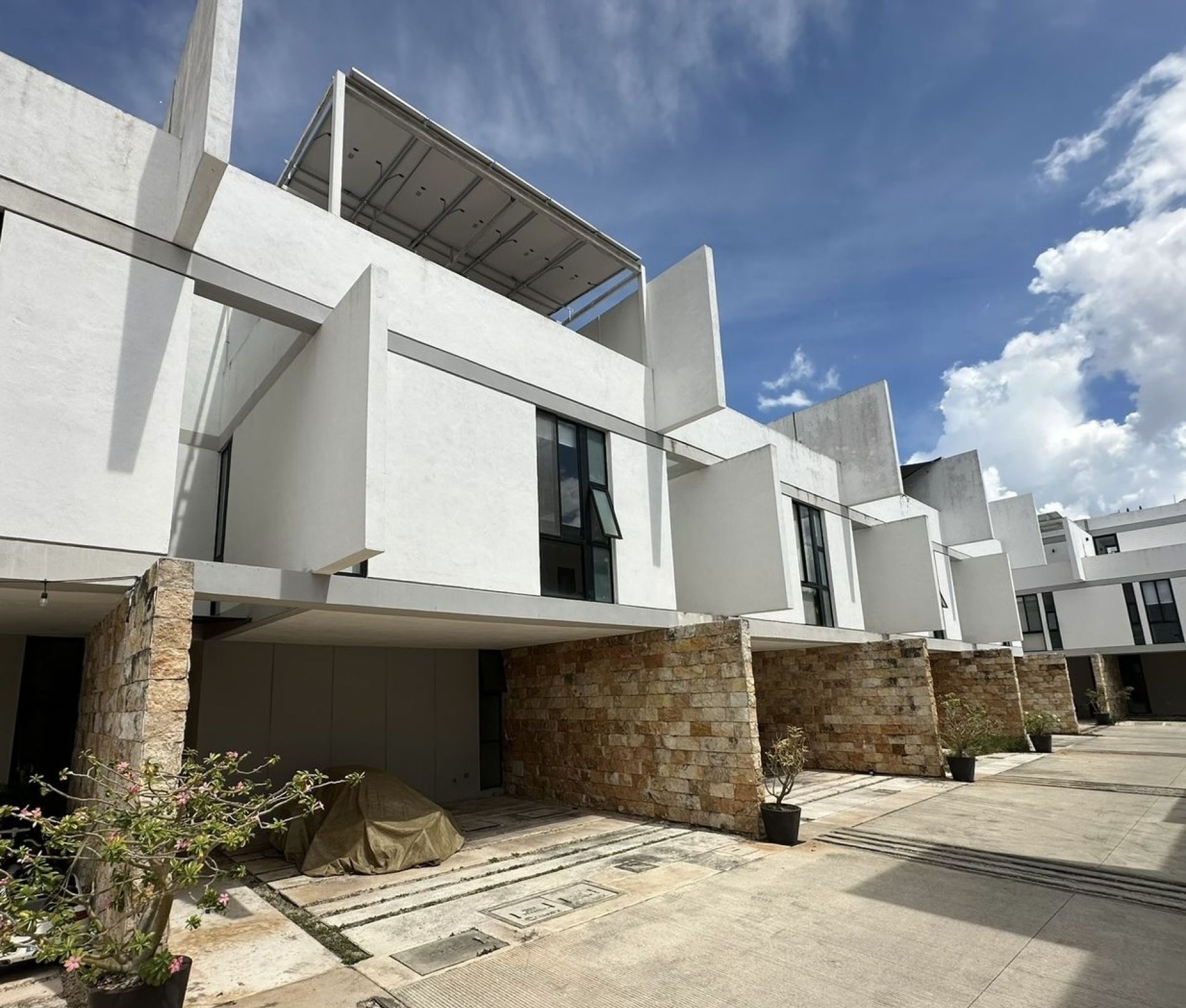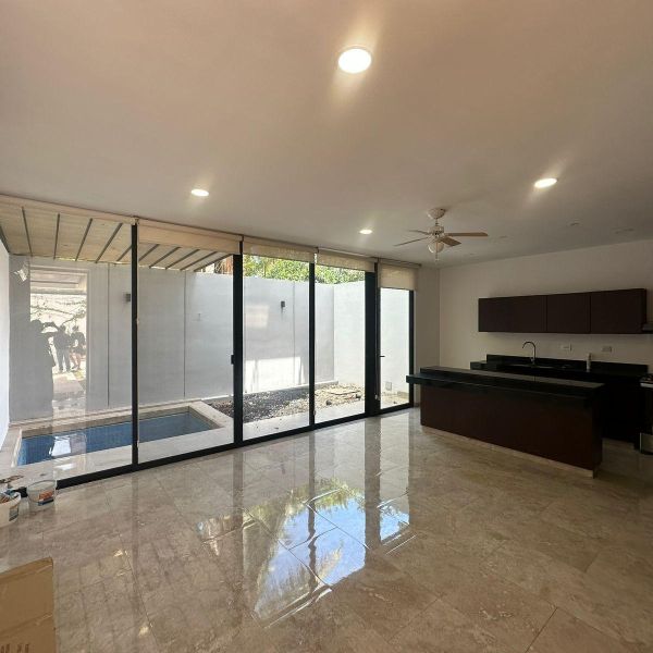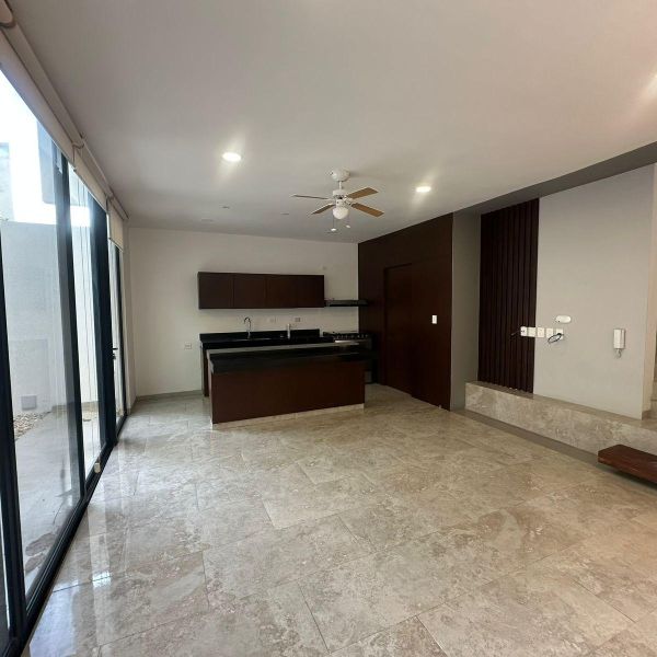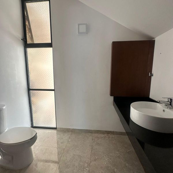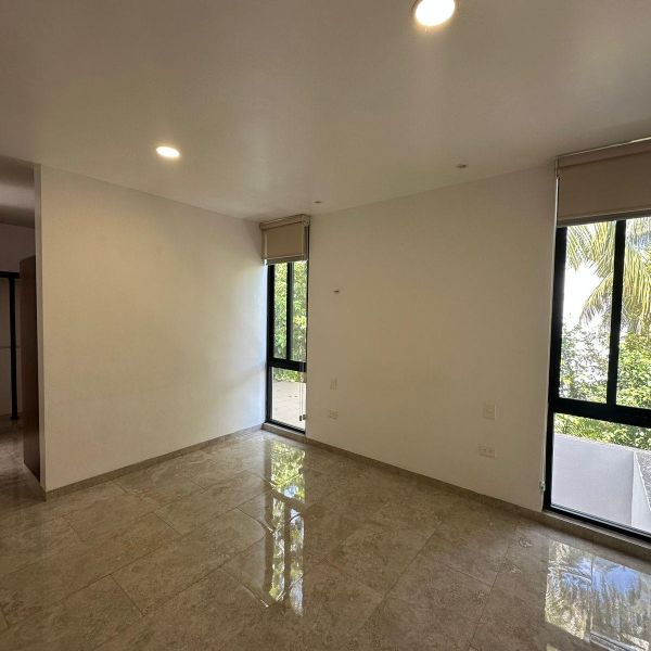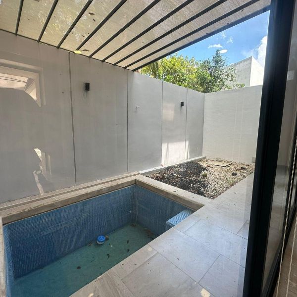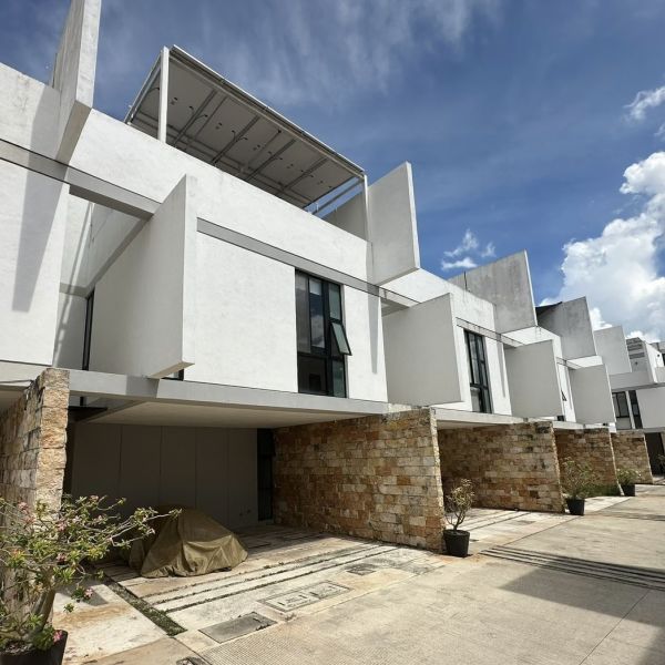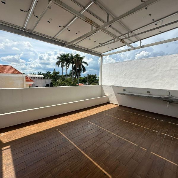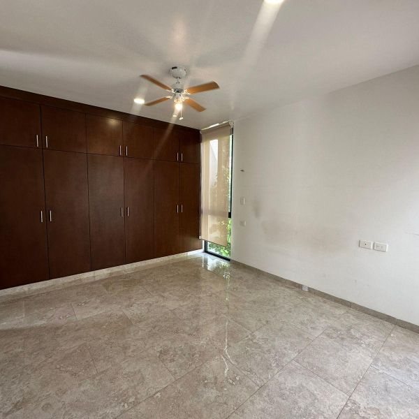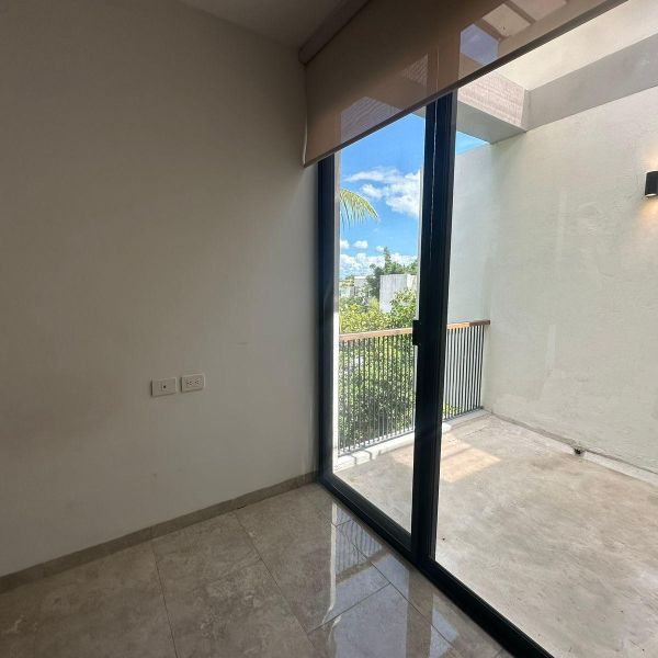 Townhouse de 3 habitaciones en renta, con paneles solares, equipado, en privada residencial, con alberca y rooftop.